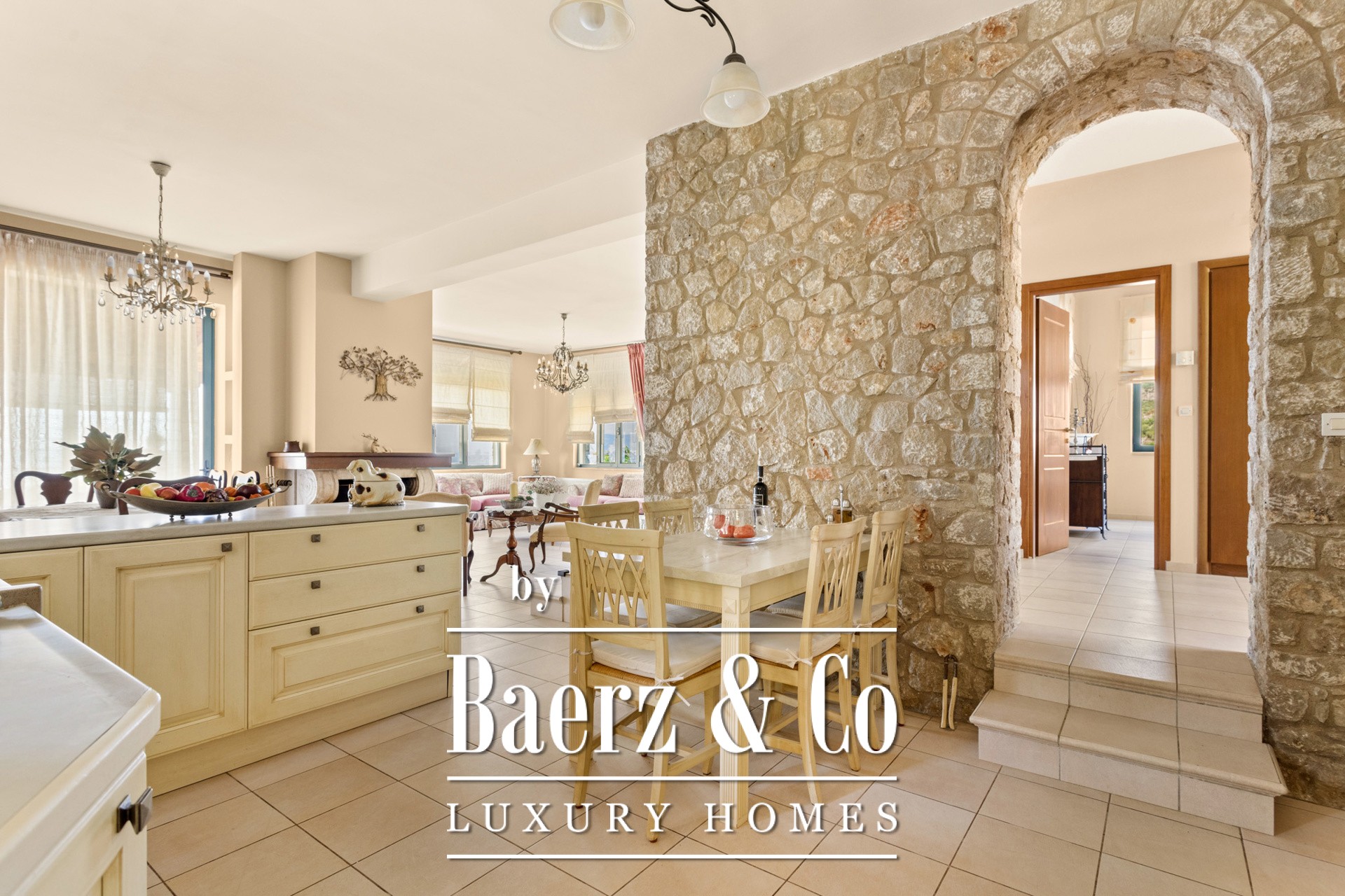 Het buitenleven is geïnspireerd op de lokale traditie: terrassen voor diner en ontspanning, zomerse buitenkeukens voor entertainment en open parkeergelegenheid ten behoeve van het comfort. Deze luxe villa te koop in Stoupa is een uitnodiging tot de authentieke levensstijl van Zuid-Griekenland, met directe toegang tot lokale taverna’s en ongerepte stranden, onder het altijd veranderende licht van de Peloponnesos.