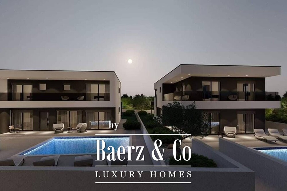 Deze villa in Svetvinčenat wordt sleutelklaar aangeboden, inclusief een identieke naastgelegen twin-villa met dezelfde indeling en afmetingen. De rustige locatie, verfijnde afwerking en subtiel zeezicht vormen samen een doordachte setting voor zowel privébewoning als toeristische exploitatie.