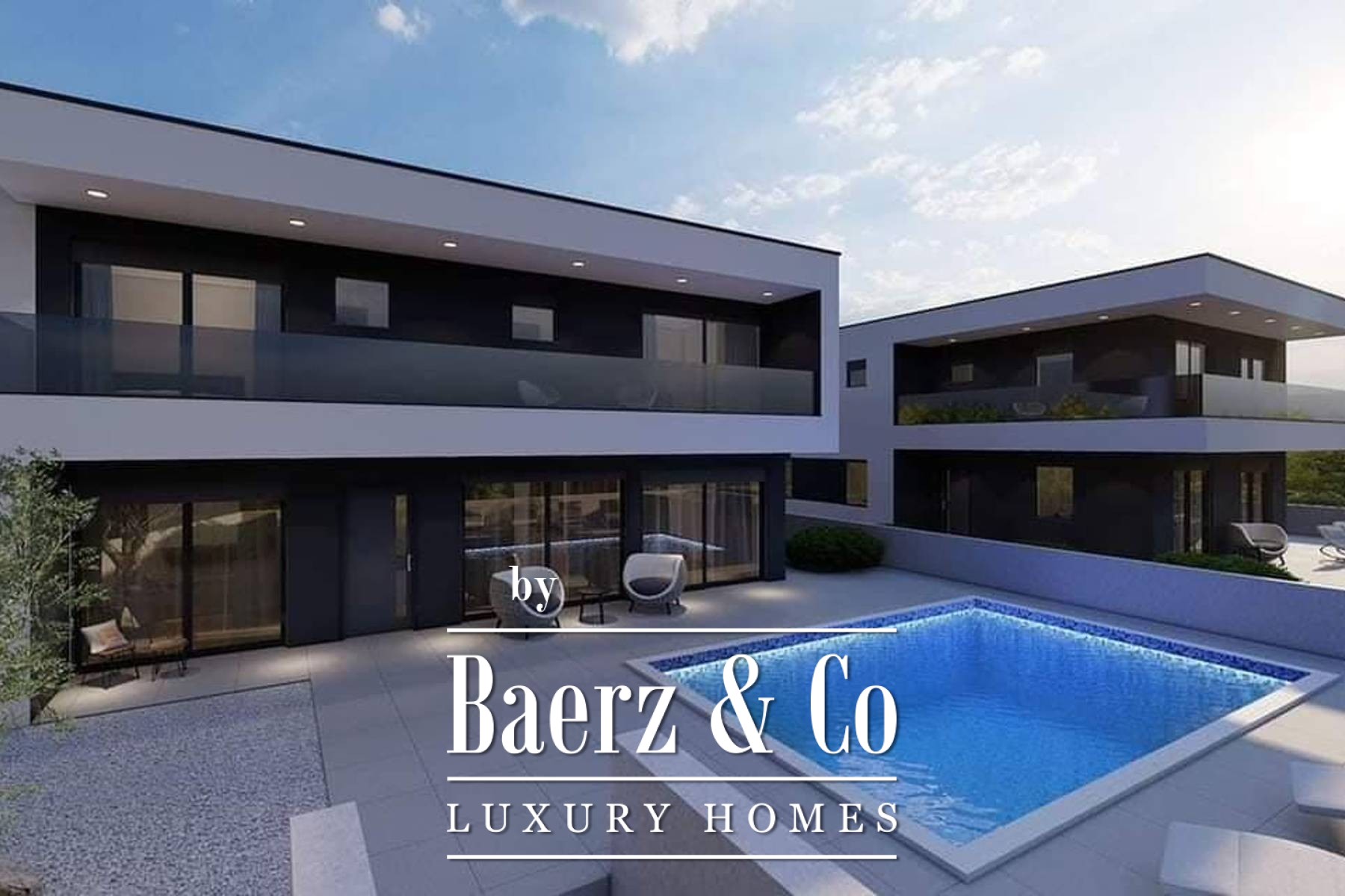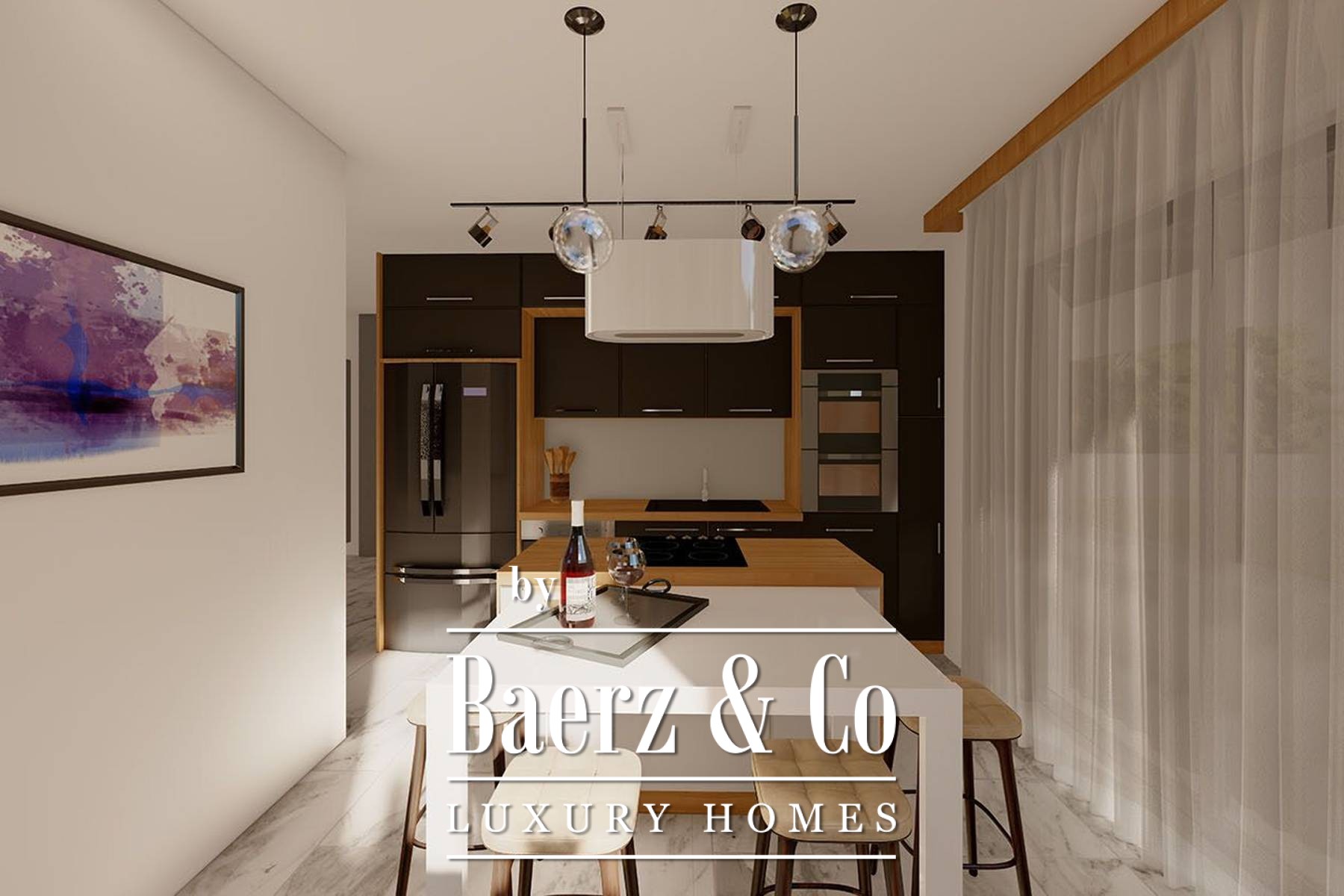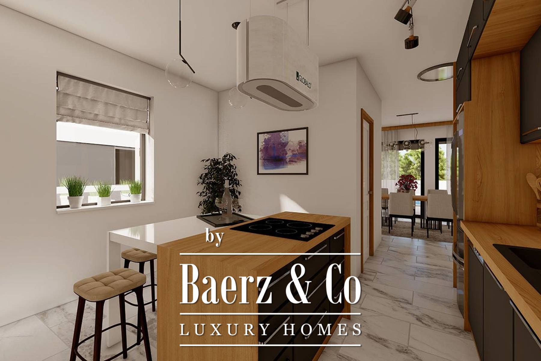 Villa Svetvinčenat biedt een moderne, vrijstaande villa te koop in Kroatië, rustig gelegen aan de rand van de bebouwde kom met weids uitzicht op zee. Deze woning van 200 m² is verdeeld over twee woonlagen en belichaamt een harmonieuze balans tussen functionaliteit en ingetogen luxe. De begane grond omvat een entreehal, bijkeuken, gastentoilet, cv-ruimte met opslag en een open indeling van keuken naar eetkamer en een royale woonkamer. Overdekte terrassen sieren zowel de voorzijde—met directe toegang tot het zwembad—als de achterzijde, waar een barbecueplek uitnodigt tot buitenleven.