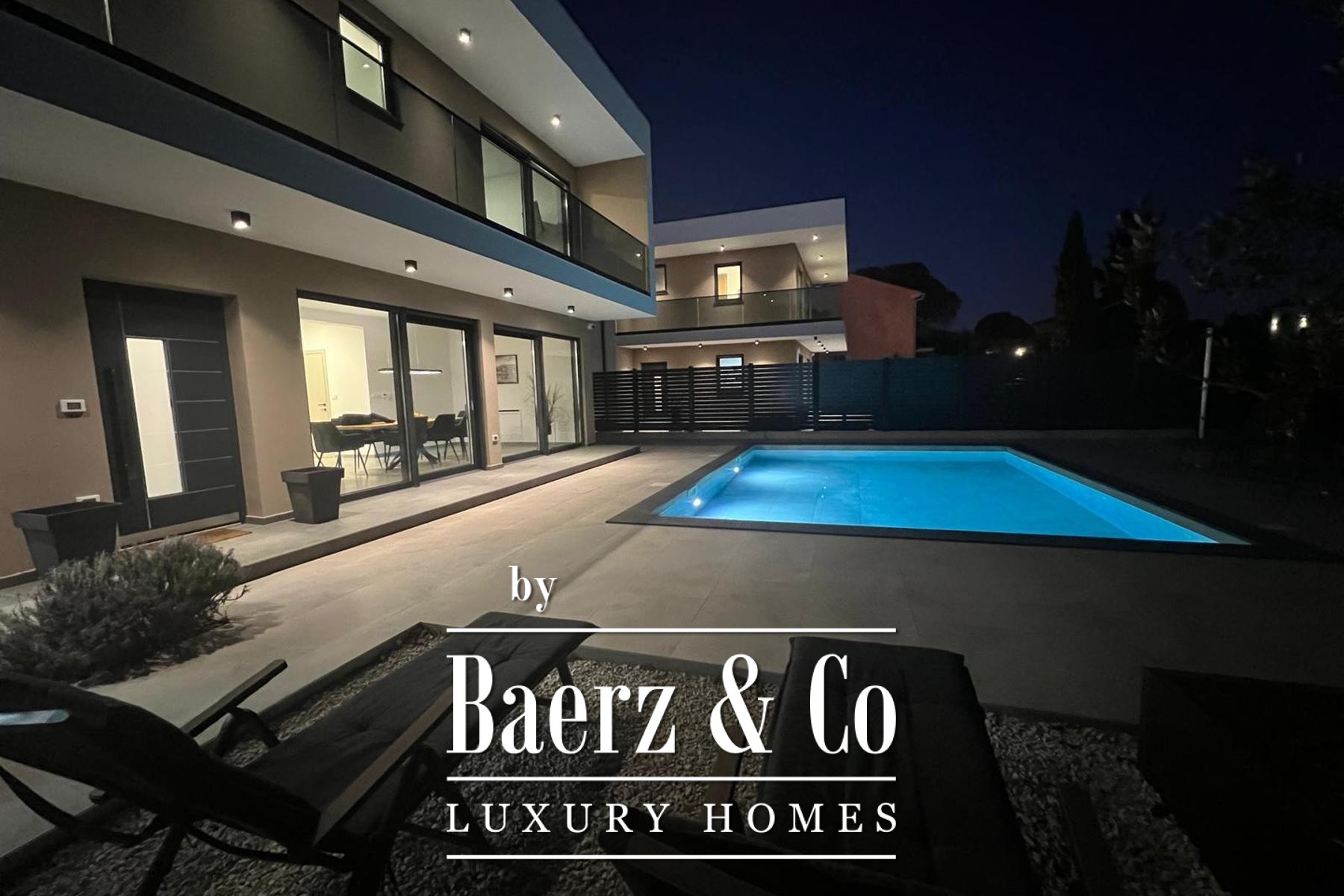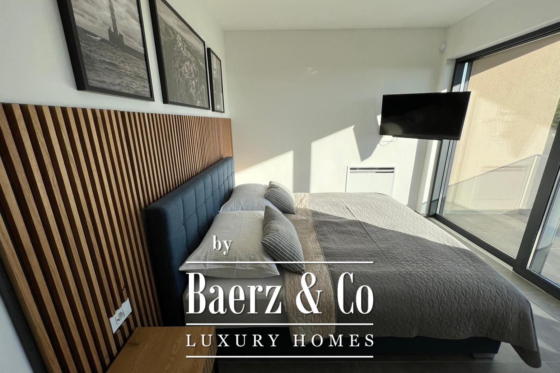 Architectonische elementen — platte daklijnen, grote raampartijen en naadloze glazen wanden — dragen bij aan een verfijnde uitstraling en een overvloed aan daglicht. Vloerverwarming, een warmtepompsysteem voor zowel verwarming als koeling, en een smart home-infrastructuur garanderen comfort gedurende het hele jaar. Extra voorzieningen zijn onder meer een zwembad van 35 m², alarm- en camerabewaking, horren tegen insecten en voorbereiding voor zonnepanelen. De villa wordt volledig gemeubileerd opgeleverd, met een zomerkeuken in ontwikkeling op het noordelijke terras. Deze woning biedt een doordachte combinatie van modern design en rustiek Istrisch woongenot.