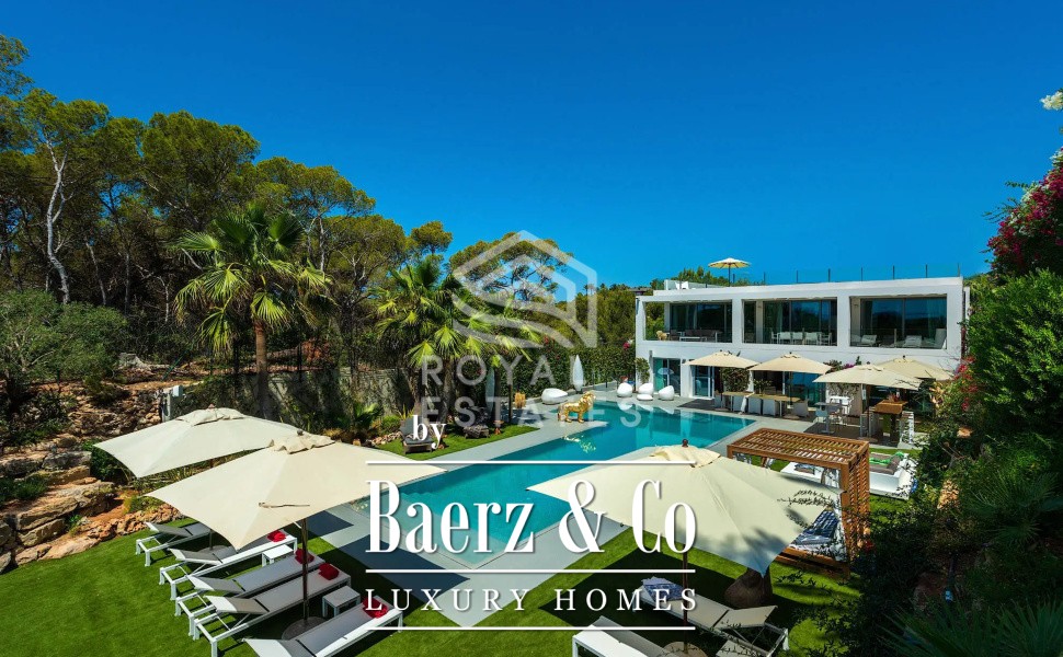 Villa Talamanca staat voor eigentijds design en rust, op slechts enkele minuten van Ibiza-stad. Deze villa integreert 525 m² aan woonruimte naadloos met een uitzonderlijk uitzicht over zee richting Formentera en biedt door royale glaspartijen, schuifdeuren van vloer tot plafond en ruime terrassen op elke verdieping een ongekend gevoel van openheid.