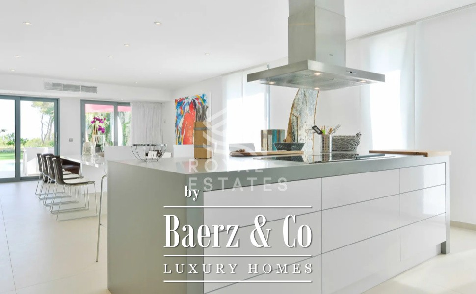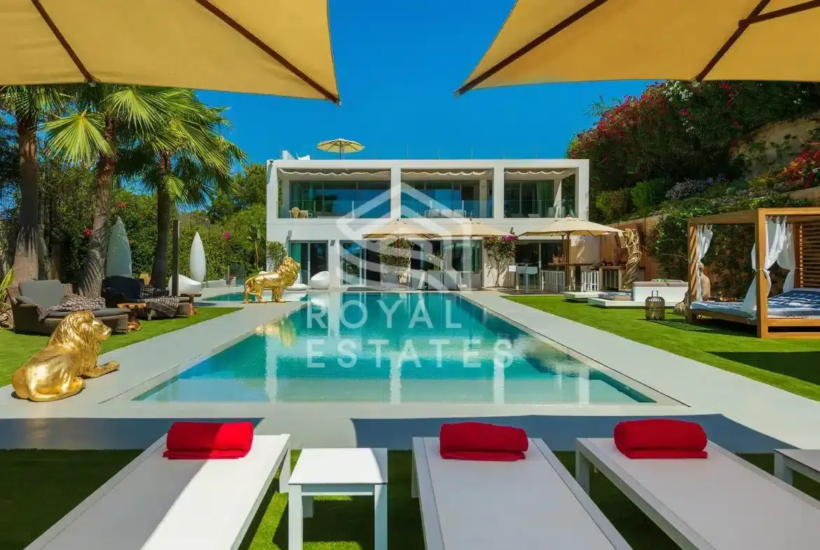 De villa beschikt over negen slaapkamers en zeven badkamers, waaronder twee gastverblijven die elk twee slaapkamers en een badkamer bevatten, zodat zowel bewoners als gasten zich verzekerd weten van privacy. De bovenste verdieping wordt bekroond door een exclusieve fitnessruimte, studio en dakterras, terwijl geavanceerde voorzieningen—zoals centrale zone-airconditioning, vloerverwarming, zonnepanelen, verfijnde verlichting en een alarmsysteem—comfort en veiligheid garanderen. Het perceel van 1.830 m² omvat een dubbele garage, diverse chill-out zones en een stijlvolle bar met barbecue, wat samen een toevluchtsoord creëert dat volledig is afgestemd op comfort en discretie. Villa Talamanca is het toonbeeld van verfijnd mediterraan wonen in een setting van ongeëvenaarde sereniteit.