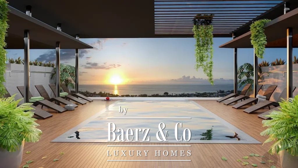 In deze eigentijdse R+2-residentie bevindt zich een gezamenlijk dakterras met zwembad, waar u panoramisch uitkijkt over Tamarin en de dag kalm afsluit met een prachtige zonsondergang. Op de eerste verdieping is een commerciële zone aanwezig, met voorrangstoegang voor eigenaren, wat zowel het gemak als het gemeenschapsgevoel versterkt. De uitzichten op het zwembad en het terras onderstrepen een levensstijl die gericht is op balans tussen privacy en rust.