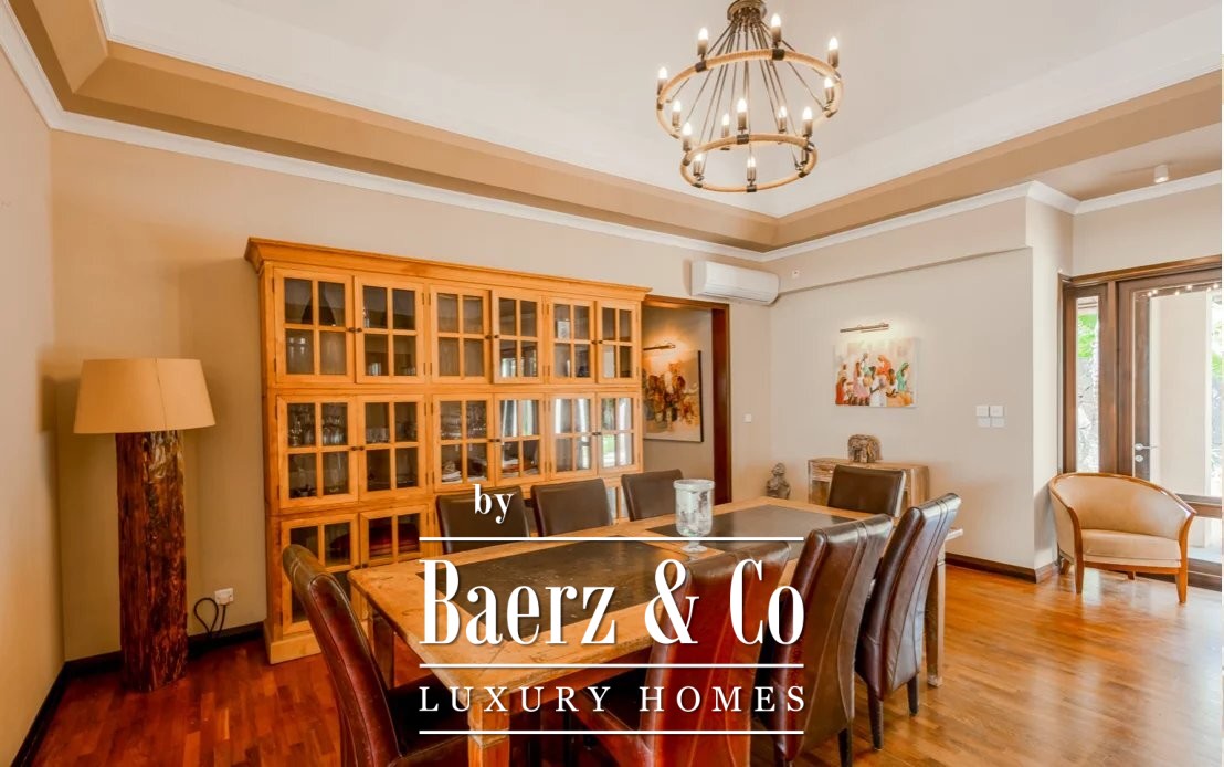 Villa Tamarin met golftoegang belichaamt een levensstijl van ingetogen exclusiviteit binnen een beveiligd domein aan de gewilde westkust van Mauritius. Deze woning van 543 m² beschikt over vijf suites, elk met een eigen badkamer, dressing en zorgvuldig ontworpen interieurs die comfort en discretie waarborgen. De dubbele woonkamer gaat naadloos over in de eetruimte en veranda, waarbij het natuurlijke licht en het serene uitzicht op bergen en fraai aangelegde tuinen worden benut.