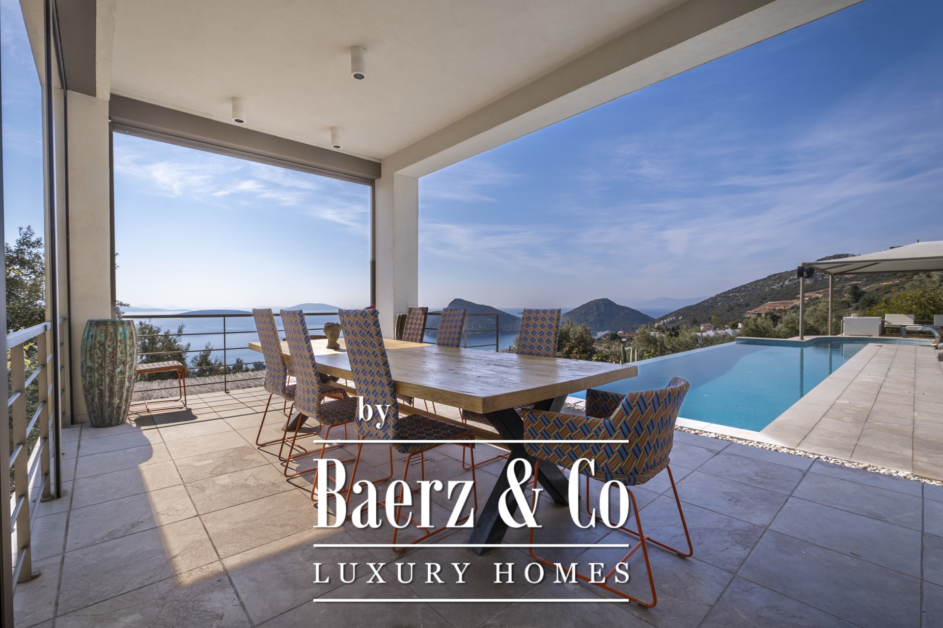 Vrijstaande woning Tolo is een uiting van moderne elegantie tegen het oneindige blauwe decor van de Argolische Golf. Deze villa van 330 m² ligt op een privéperceel van 4.039 m² en biedt onbelemmerd uitzicht op de schilderachtige haven en de zee – een zeldzaam perspectief dat het dagelijks leven kleurt met licht, rust en uitzonderlijke privacy. Bij aankomst op het hoofdterras ontvouwt zich de mediterrane levensstijl: een stijlvolle zoutwater-infinitypool, jacuzzi, buitenbar en riante eethoek met open haard nodigen uit tot momenten van verbinding, ontspanning en visueel genot. Elke ruimte is zo ontworpen dat de interactie tussen zee en lucht wordt versterkt, waardoor elk samenzijn een unieke ervaring vormt.