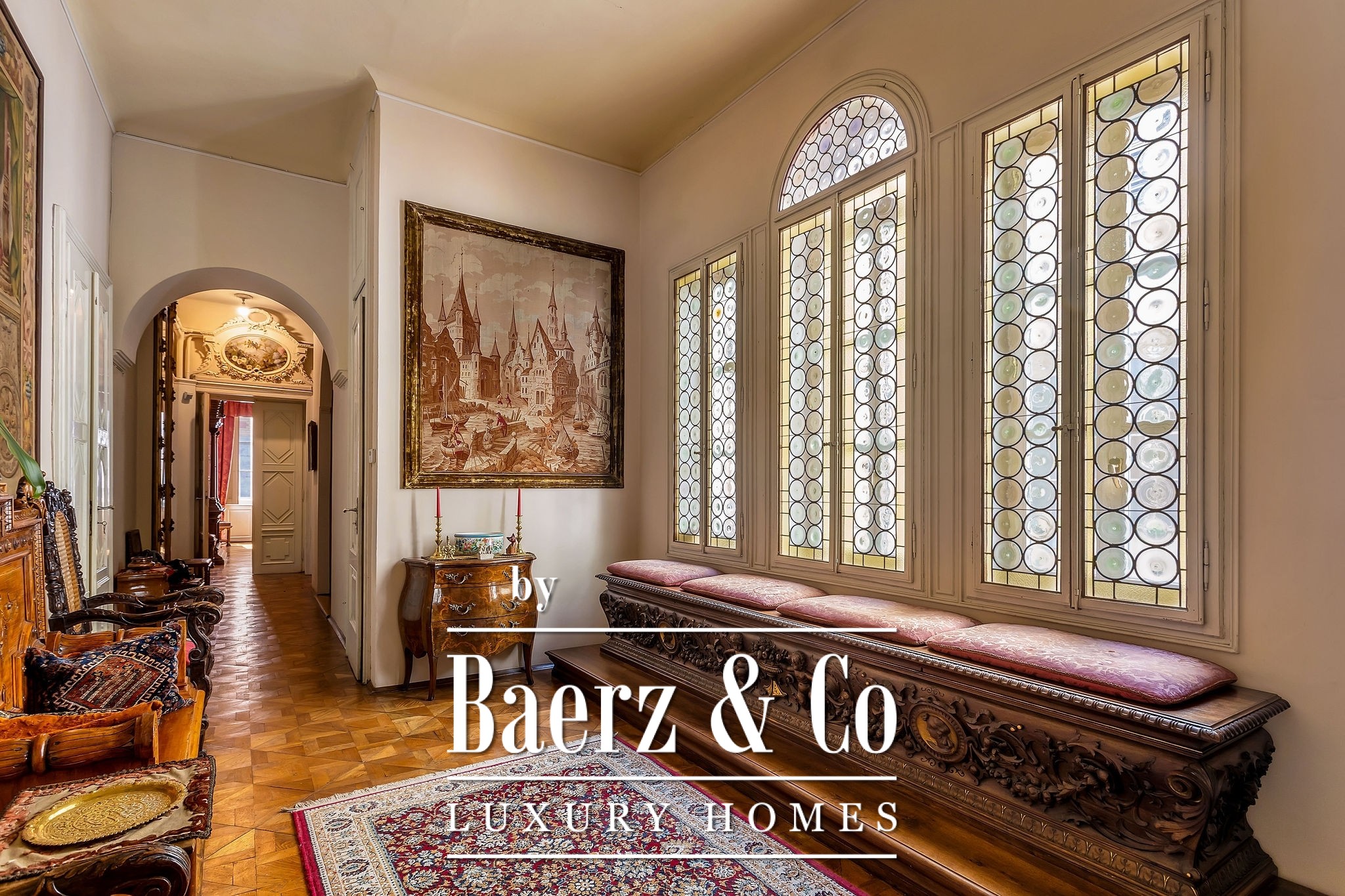 Het appartement beslaat 320 m², badend in oostelijk en westelijk licht dat verfijnd stucwerk, hoge plafonds en origineel parket tot leven brengt, als een harmonie van historische periodes. Twee balkons bieden wisselende vergezichten, terwijl zorgvuldig gekozen meubelen en intrigerende architectuurdetails een ingetogen grandeur oproepen. Een extra zolderruimte van 90 m² biedt architectonische flexibiliteit voor een privé-atelier, representatief kantoor of verdere verfijnde leefruimte.