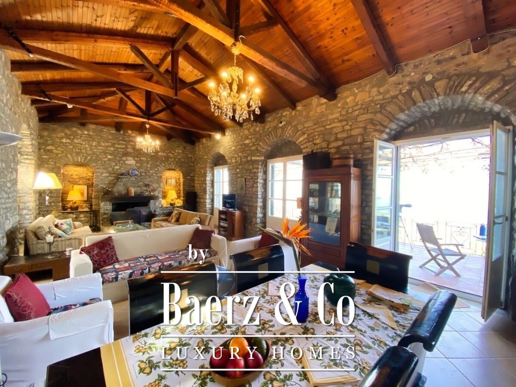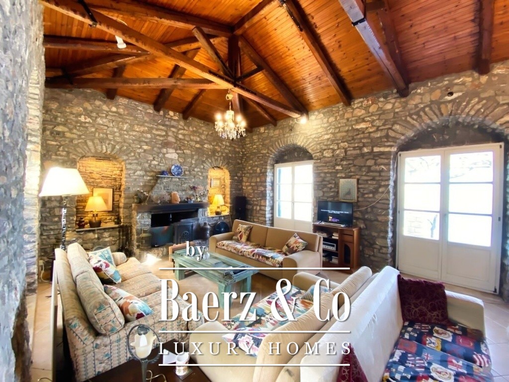 Deze vrijstaande villa in Galatas staat op een heuvelperceel van 4.000 m² en biedt een weids uitzicht over de blauwe zee. De stenen woning beschikt over 180 m² woonruimte, waar traditionele architectuur moeiteloos samengaat met moderne voorzieningen. De royale en lichte woonkamer is gesitueerd rond een stenen open haard. Nabij bevindt zich een aparte keuken, terwijl drie slaapkamers en twee badkamers een ingetogen vorm van luxe uitstralen dankzij doordachte afwerkingen en subtiele details. Dubbel glas en vloerverwarming zorgen voor comfort in elk seizoen, aangevuld met een autonoom verwarmingssysteem, een warmtepomp en airconditioning.