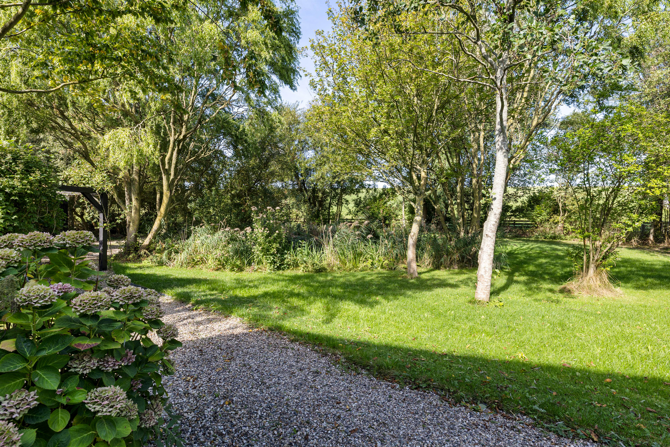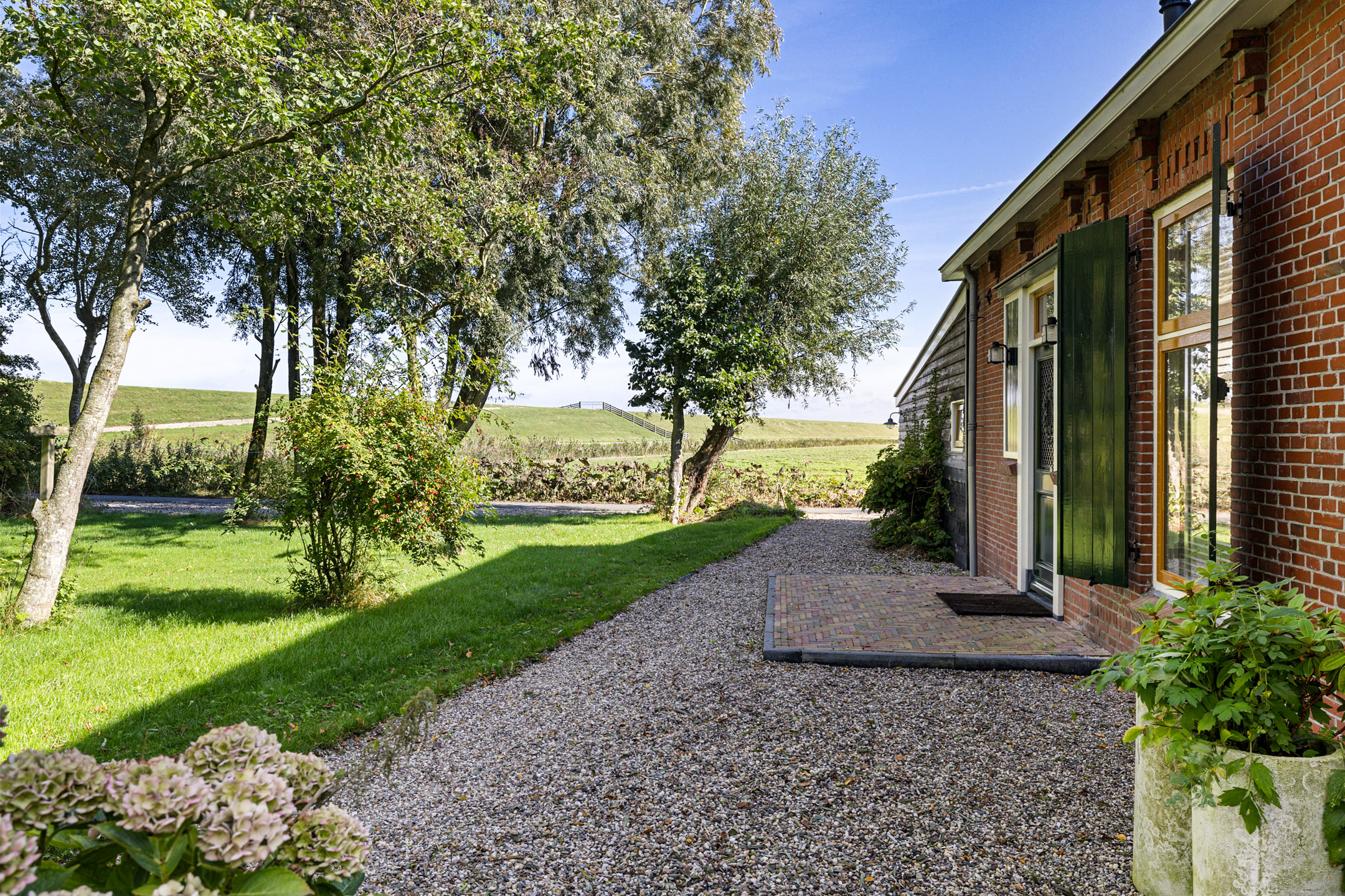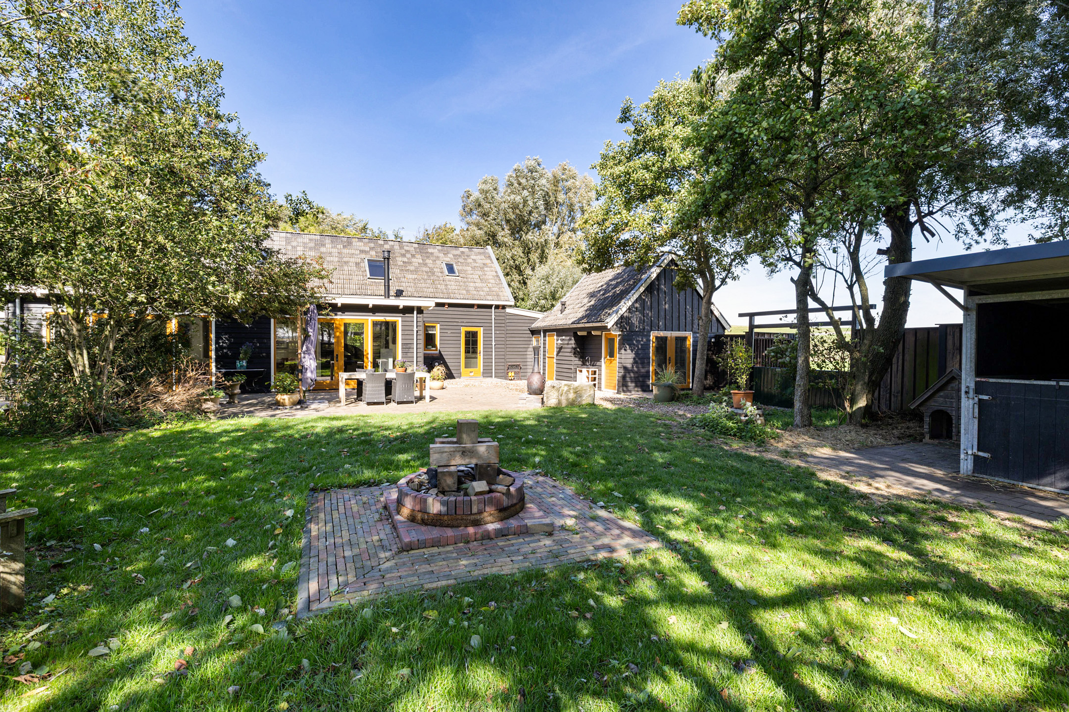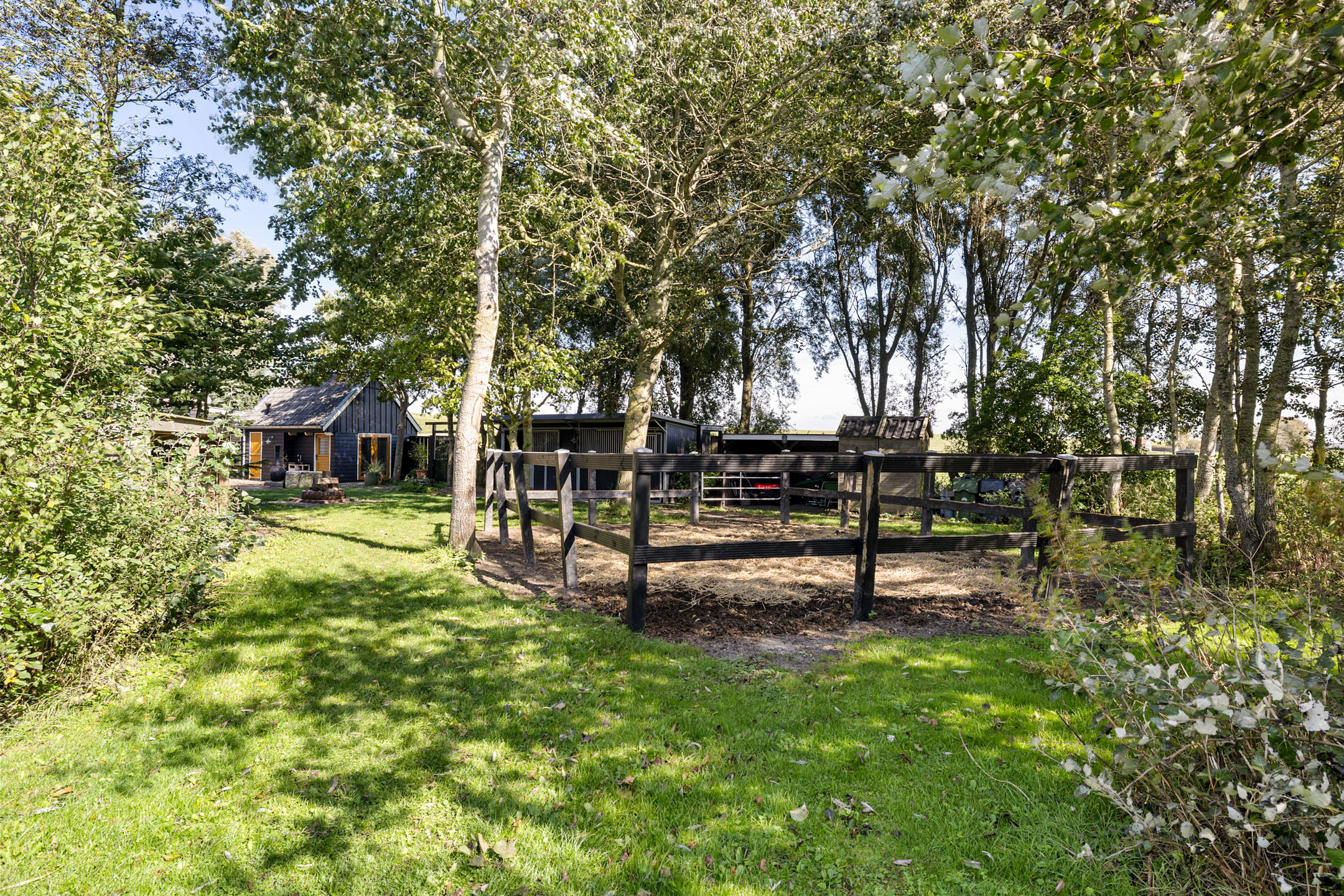 De tuin is speels en fraai aangelegd met wellness-hoek, wandelpaden, boomgaard, terrassen en diverse zithoeken. De bostuin herbergt een paddock en twee paardenboxen met bergruimte en overkapping. Hier woon je in vrijheid, in de natuur en stilte, met de Waddenzee en haar fauna als achtertuin.