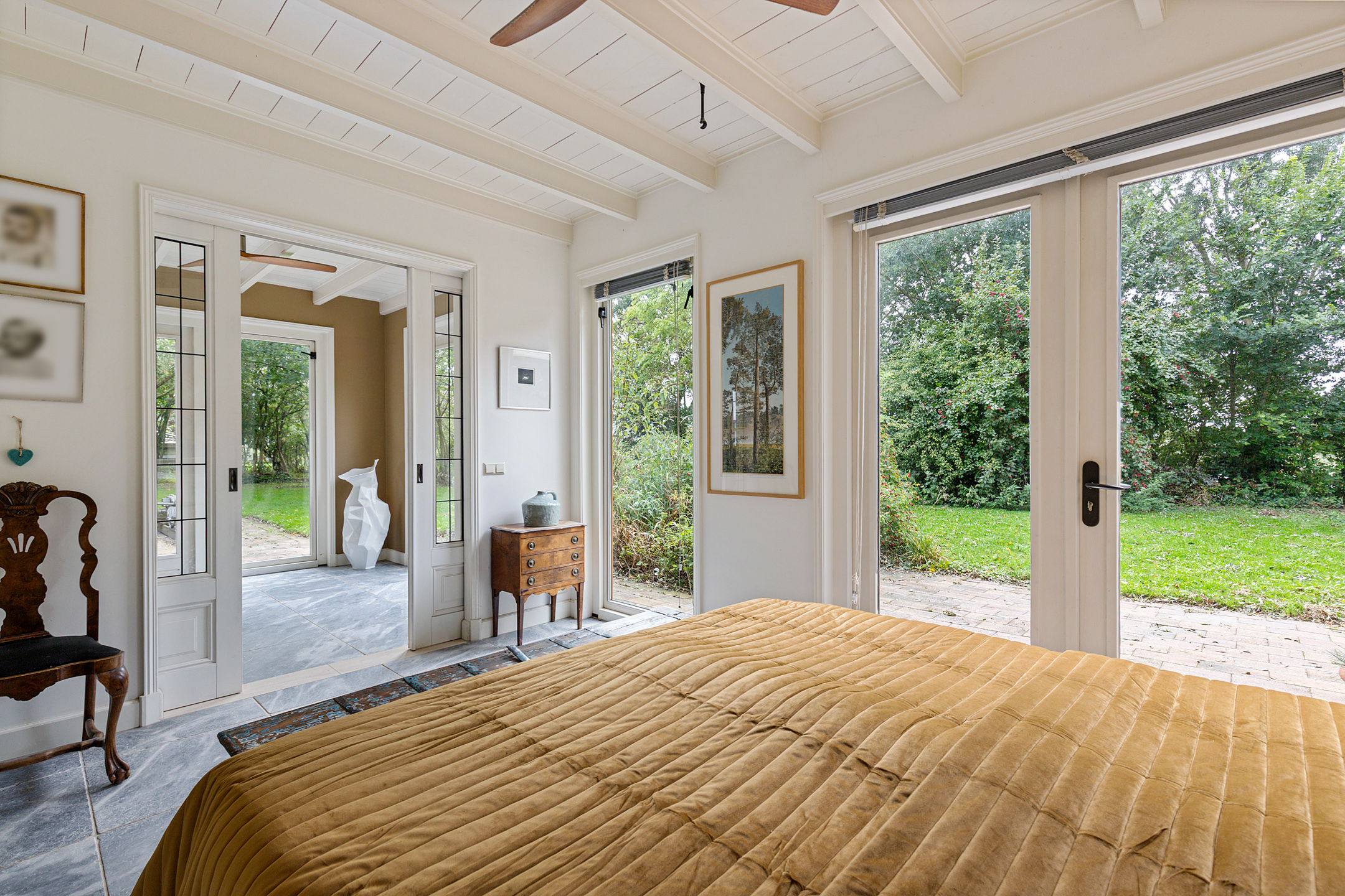 Achter in de tuin, grenzend aan de vijver en met de mogelijkheid voor een eigen oprit, is een modern vrijstaand bijhuis gebouwd met totale privacy ten opzichte van het dijkhuis. Deze zelfstandige, hotel-chique woonruimte beschikt over open keuken, living, badkamer en in de loft een slaapkamer en atelier/werkkamer. Perfect voor dubbele bewoning, werken aan huis of mantelzorg.
