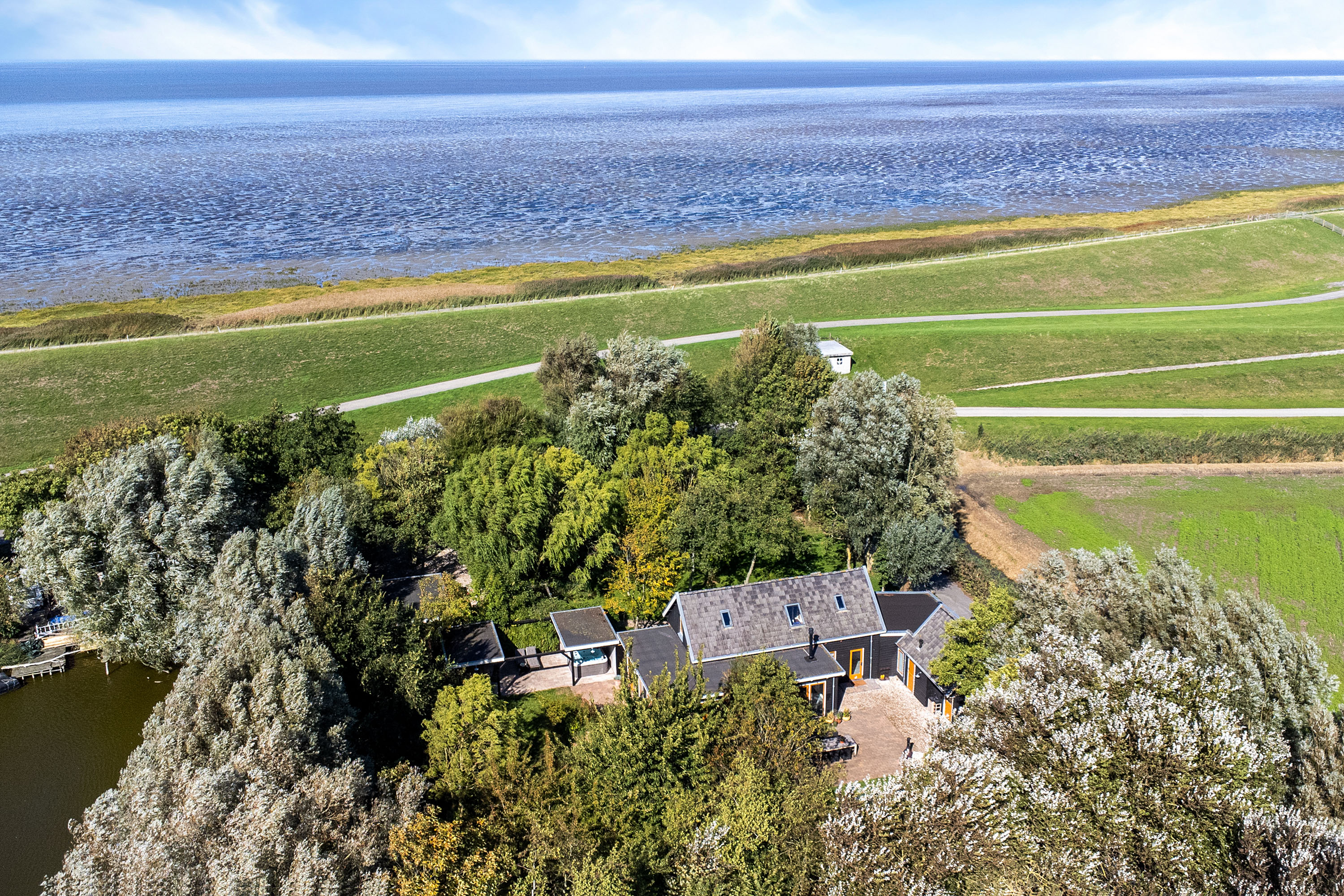 Waddenzee hide-away: stijlvol dijkhuis | bijhuis | wellness & panorama