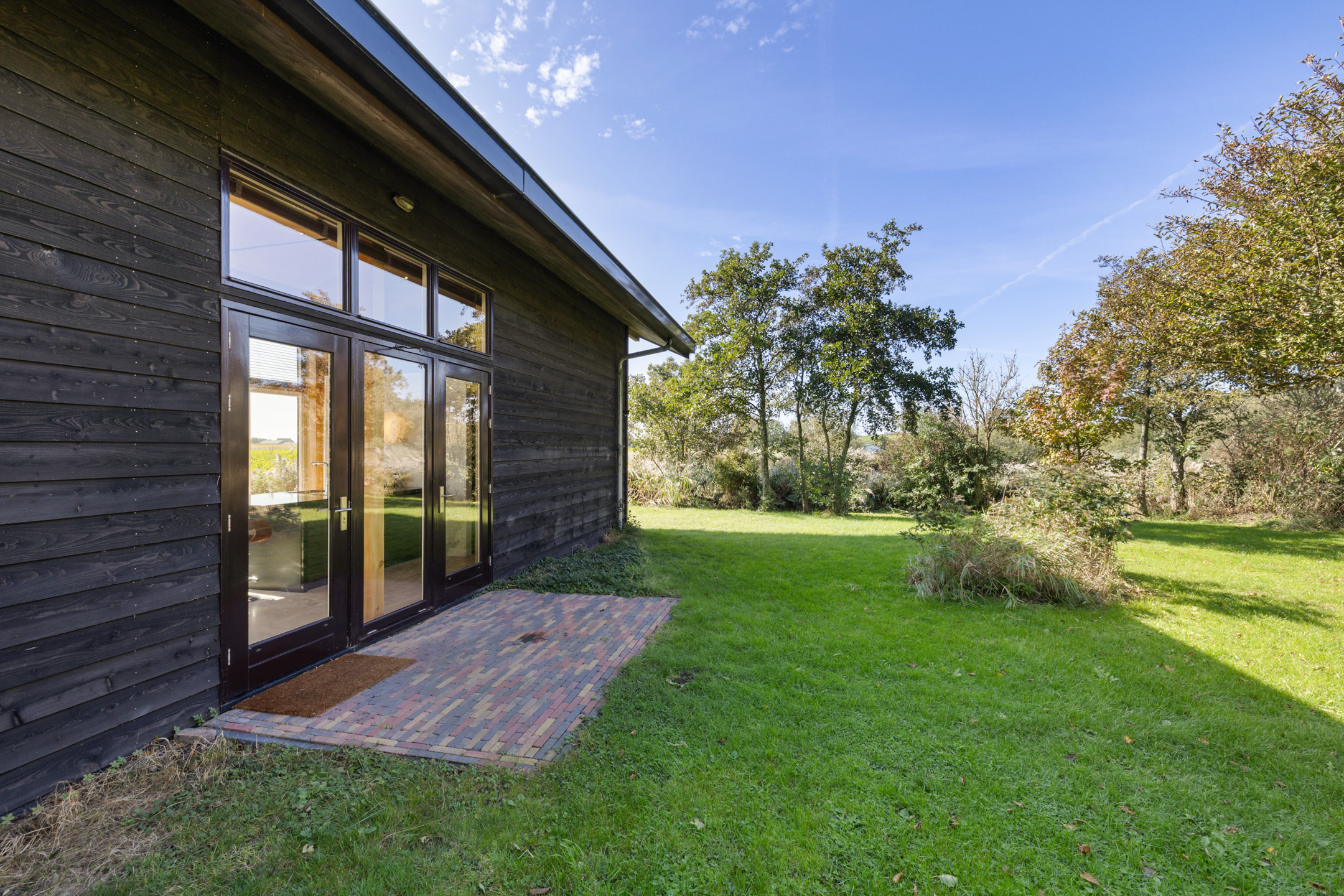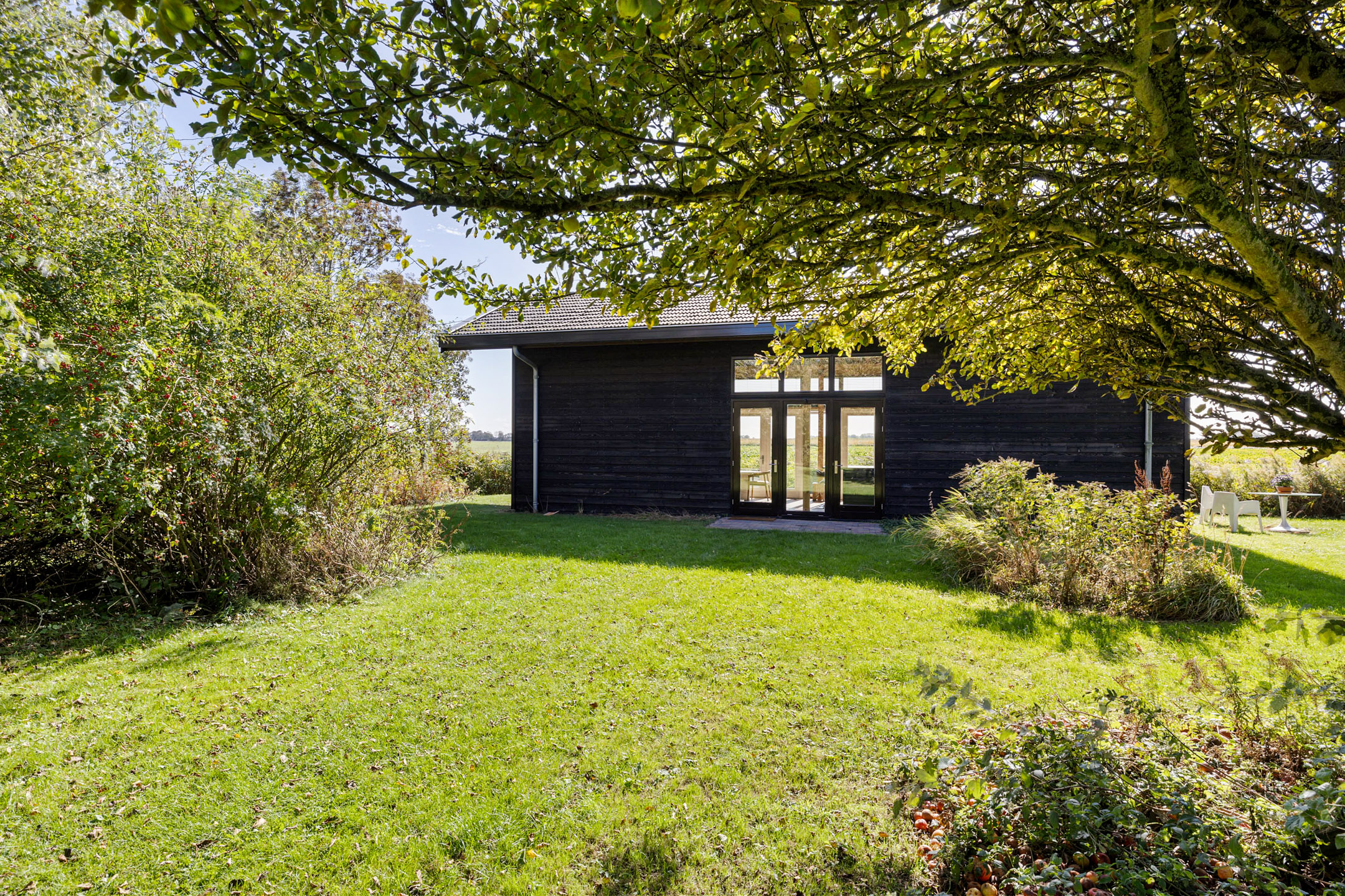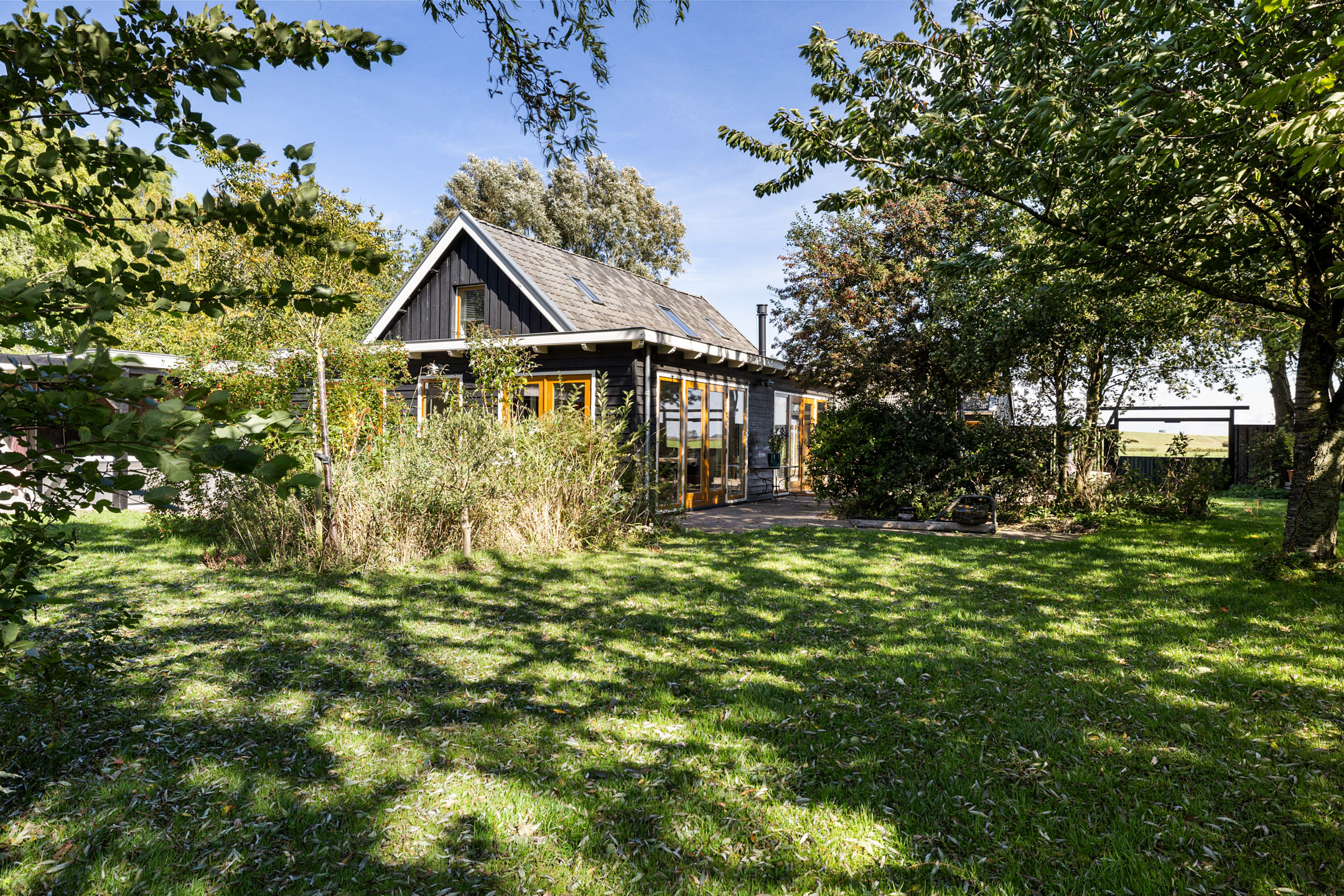 Het bijhuis, type schuurwoning (ca 13x4.5m) is onder architectuur gebouwd, volledig geïsoleerd en rondom voorzien van hoge raampartijen (HR++) met panoramisch zicht. De huisje is aan de lange zijde zowel aan de voorkant als aan de achterkant middels openslaande tuindeuren te betreden. Met aan beide zijden terrassen met handgevormde klinkers. De lichte hoge ruimte met stoere douglas spanten in het zicht benadrukken het leven in en met de natuur. Dankzij het dark-sky gebied is de prachtige sterrenhemel helder in volle glorie te zien. Zelfs het Noorderlicht vertoont zich hier geregeld. En wat van de overvliegende zwermen water-, trek- en weidevogels..