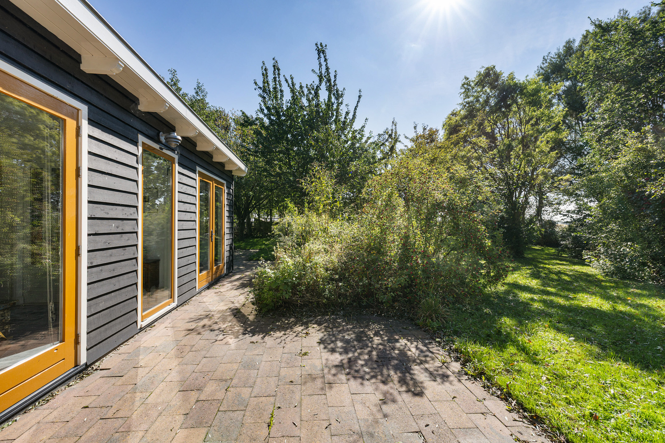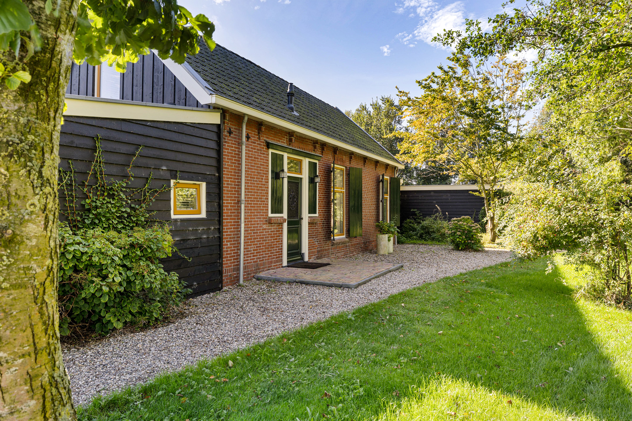 Het bijhuis is gefundeerd met gevelbekleding van douglas rabatdelen en er liggen 24-420 WP zonnepanelen op het dak. Gezien de ligging op het perceel is het een optie, in overleg met de gemeente, een eigen oprit voor het bijhuis te realiseren.