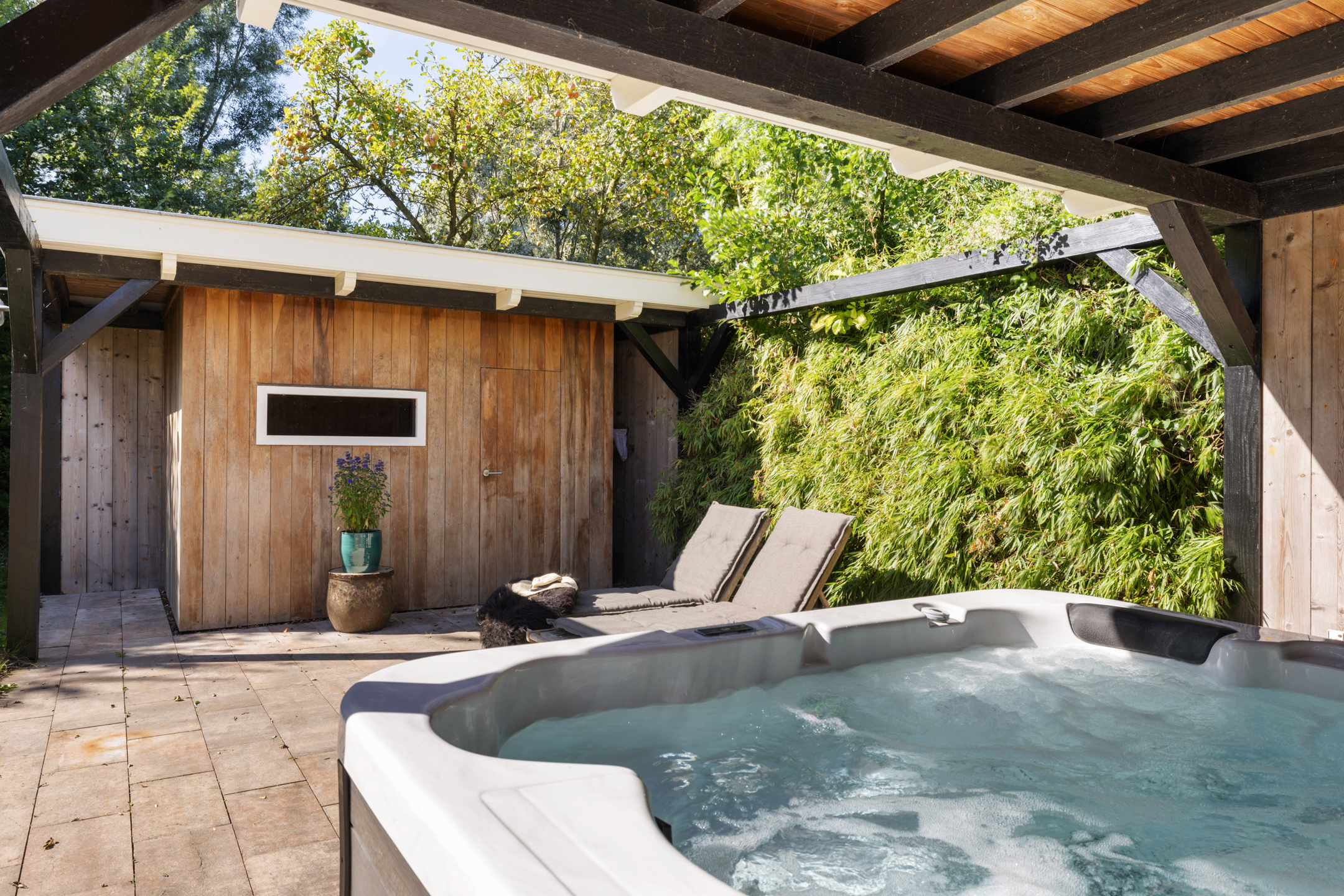• Wellness met sauna, toilet, zonneterras, jacuzzi en buitendouche