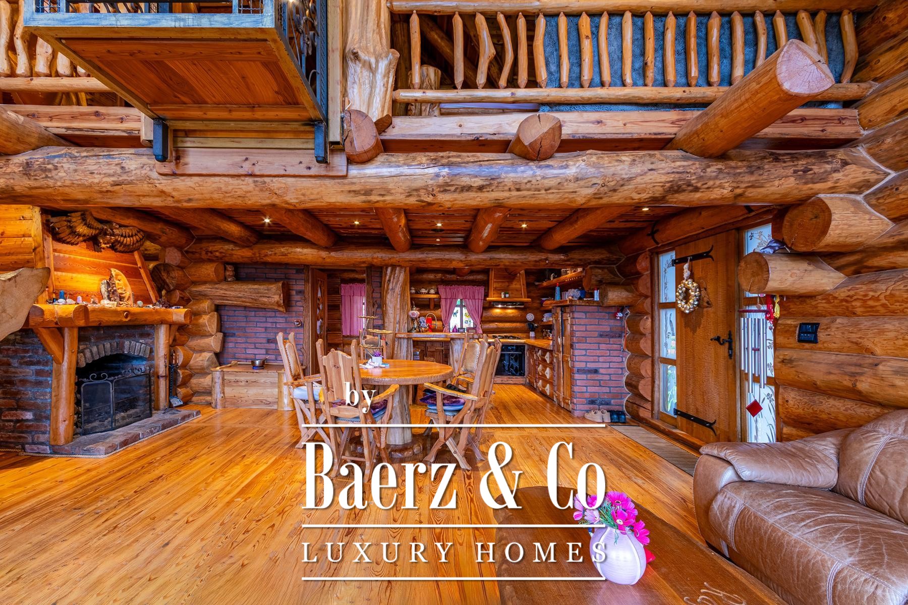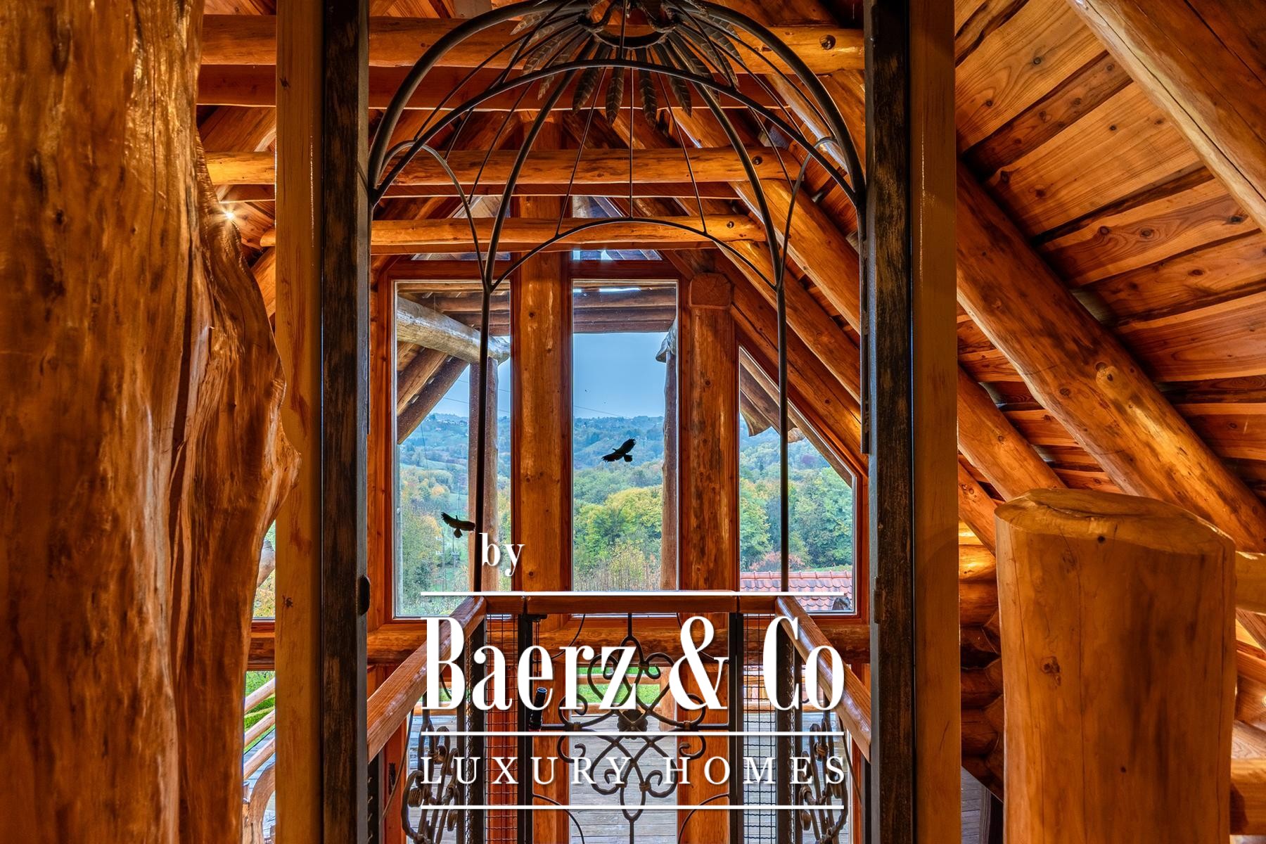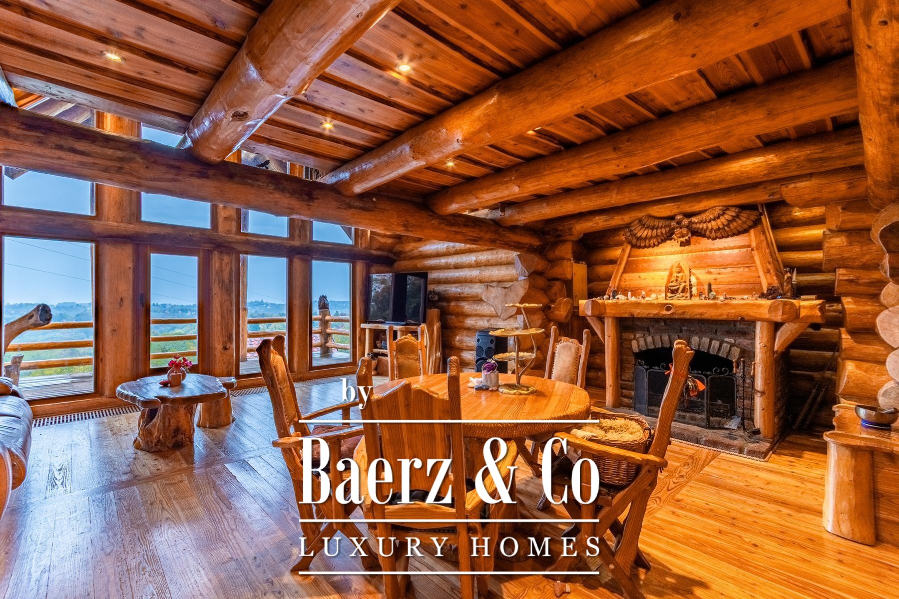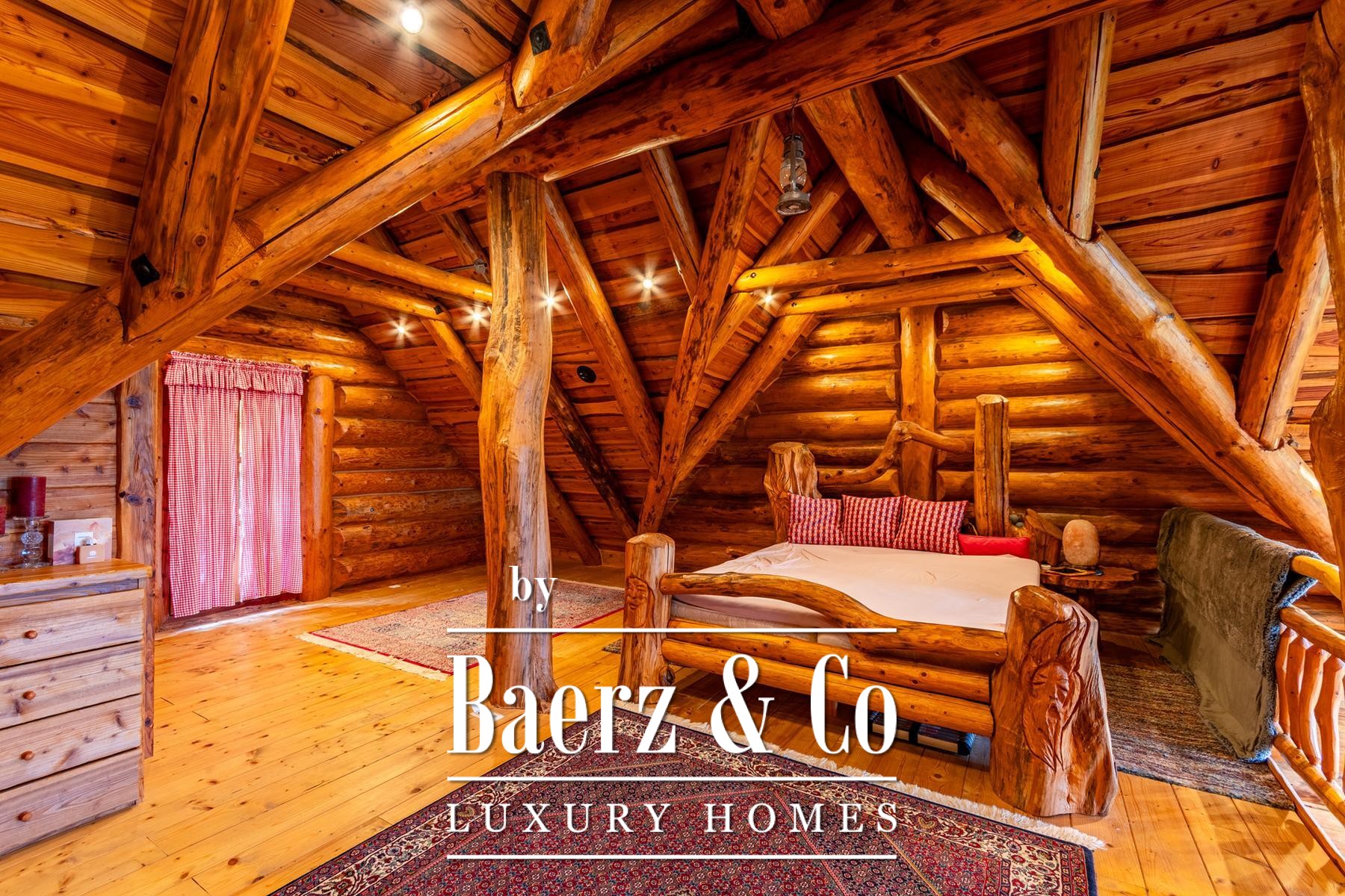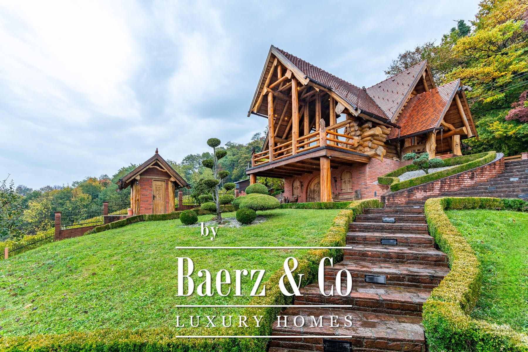 Drie bijgebouwen—een paviljoen, werkplaats en een buitentoilet—onderstrepen het authentieke landelijke karakter. Het zorgvuldig aangelegde perceel met appel-, pruimen-, vijgen-, aronia- en frambozenbomen biedt ruimte voor bezinning en rust. Panoramische vergezichten en diepe privacy creëren een unieke sfeer. Dit is niet eenvoudigweg een blokhut te koop in Varaždinske Toplice, maar een weloverwogen toevluchtsoord geworteld in locatie en materiaal.