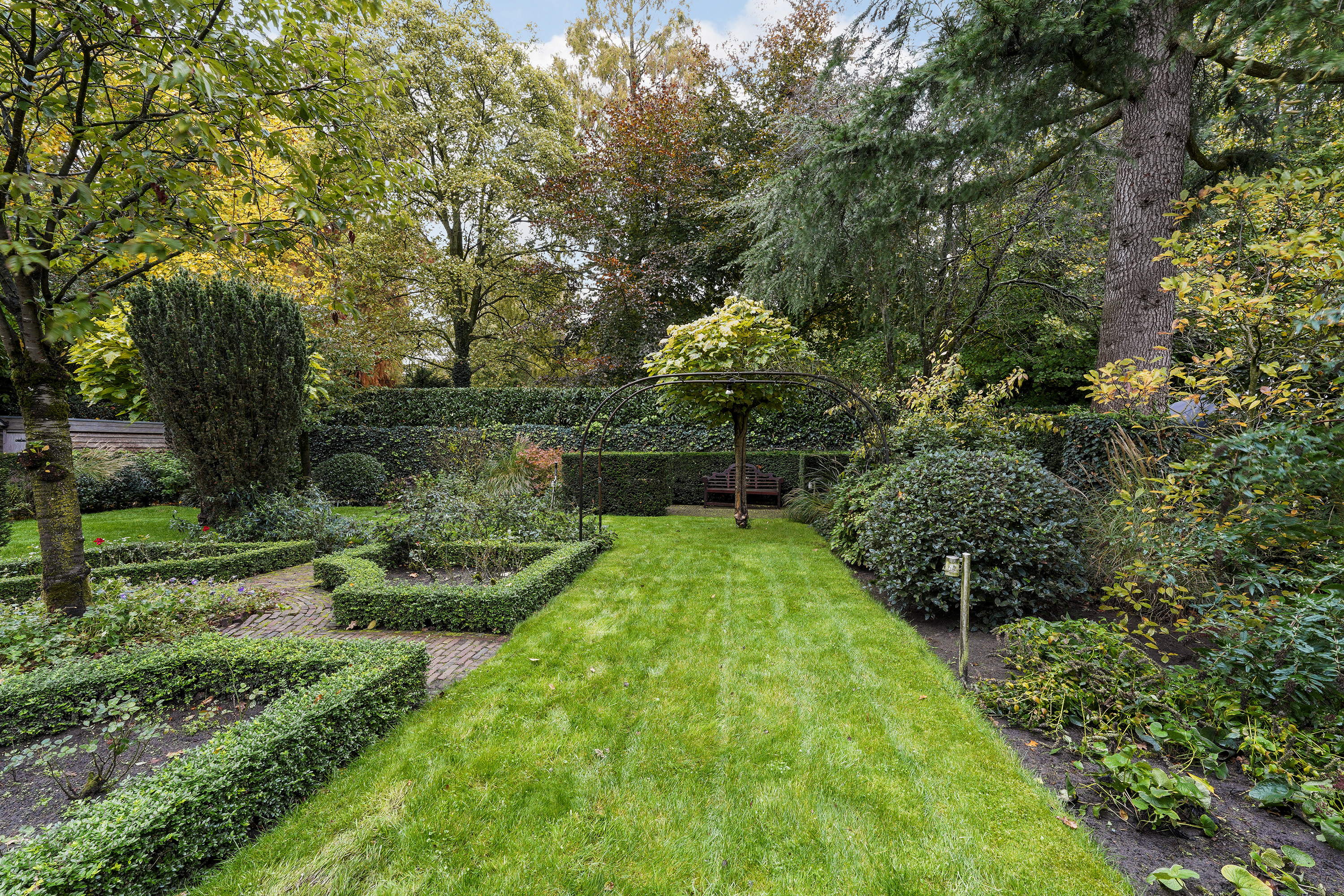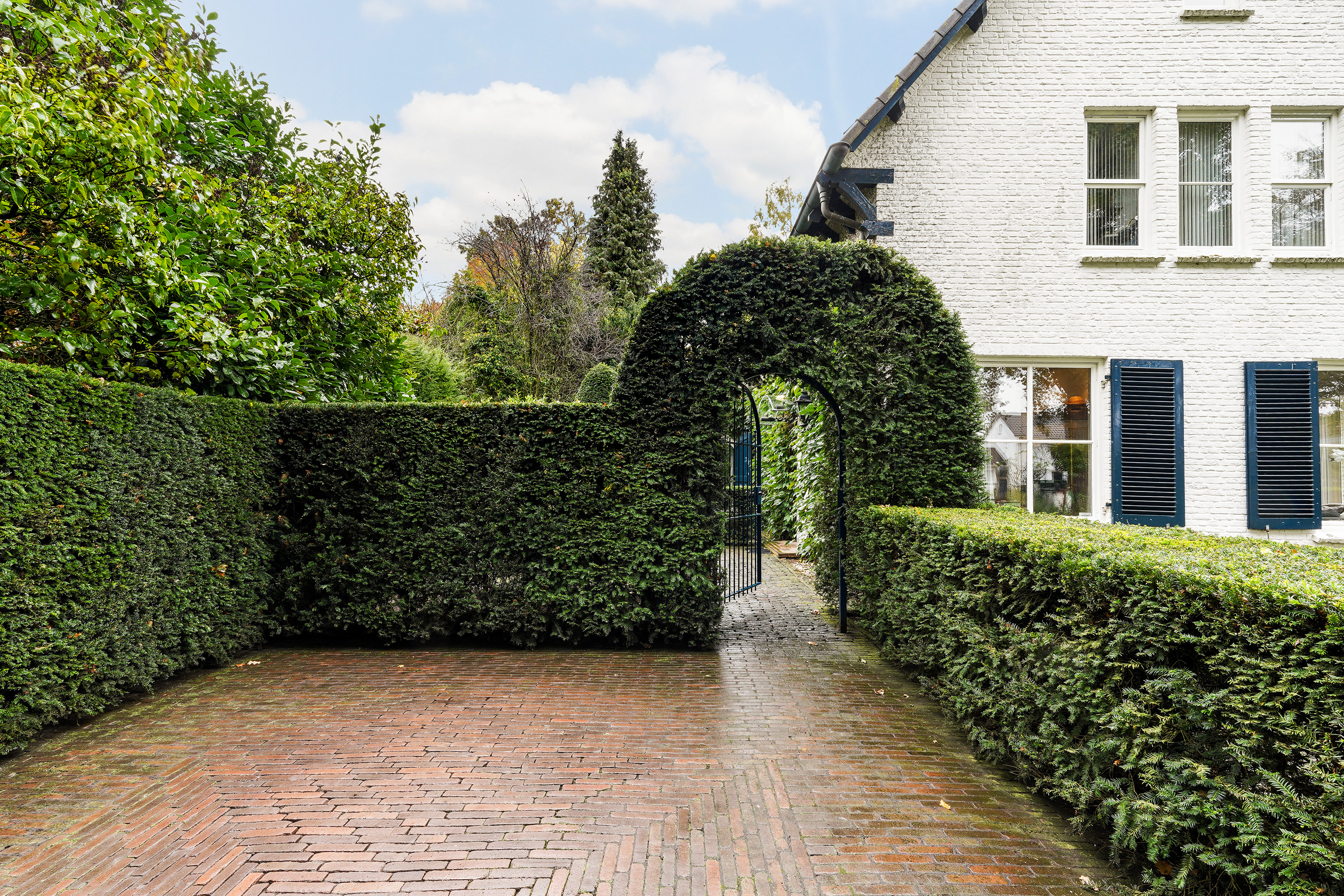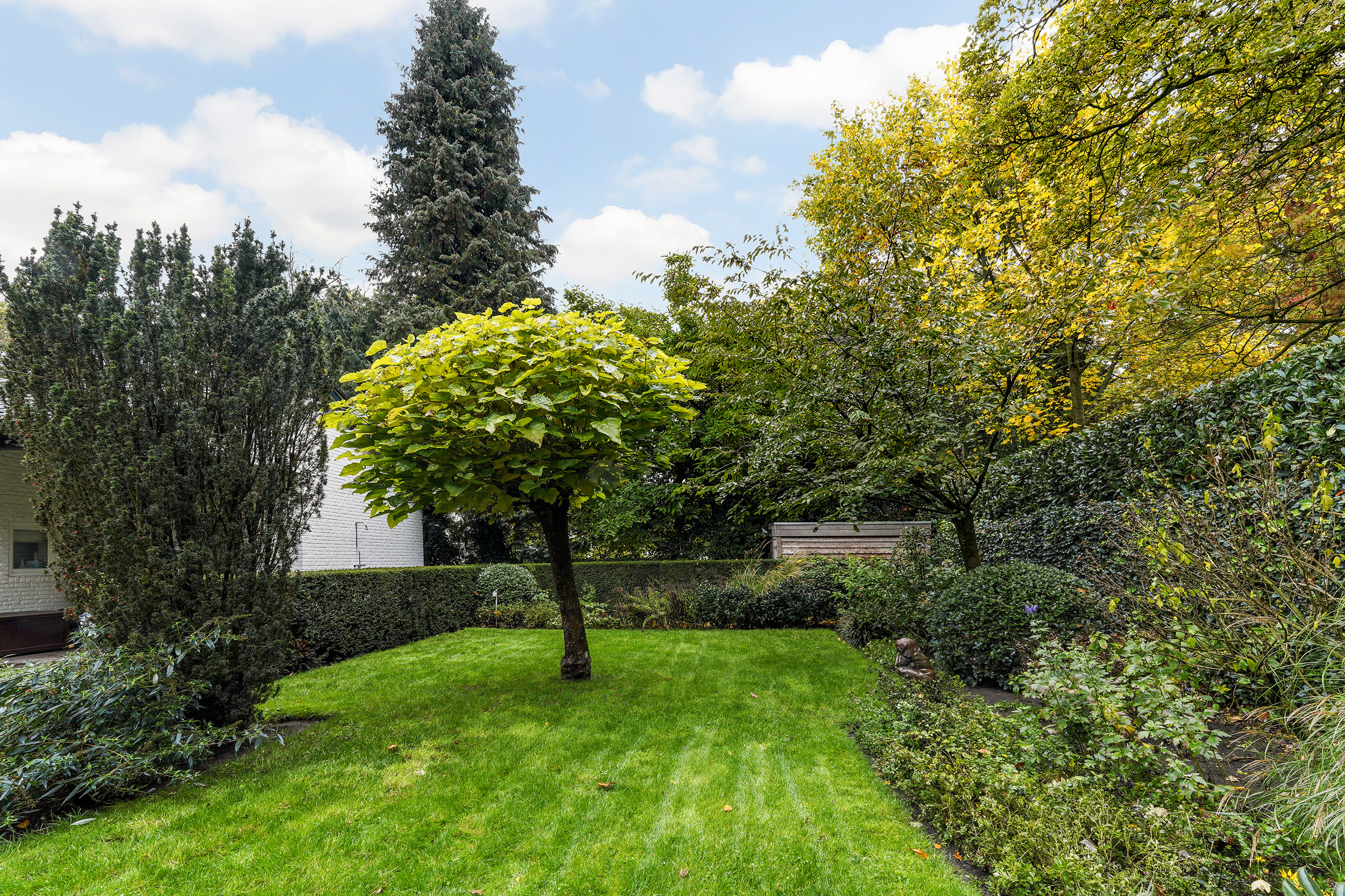 De tuin rondom de woning is een oase van rust, fraai aangelegd onder architectuur en uitstekend onderhouden. Hier geniet u van de zon, het groen en de privacy. Achterin de tuin bevindt zich aansluitend aan de berging een veranda, ideaal om beschut te zitten of tuingereedschap op te bergen. De bestrate oprit met elektrisch hek biedt toegang tot het perceel en voldoende parkeerruimte voor meerdere auto’s.