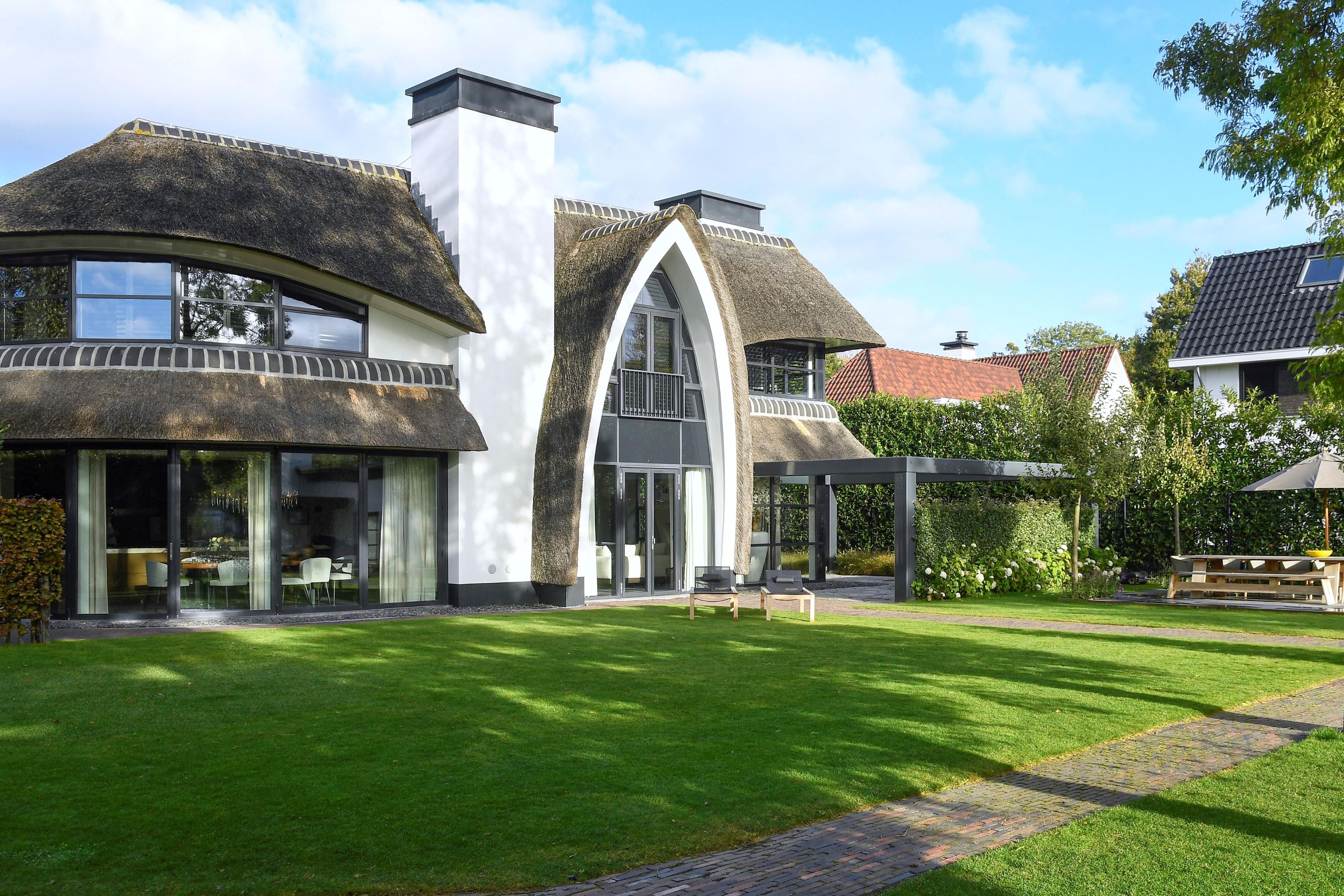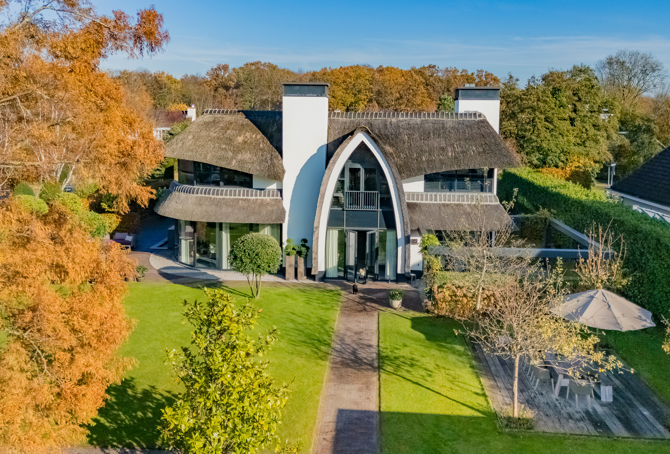 Met haar rieten kap, sculpturale lijnen en ligging aan het water is deze villa een herkenningspunt in de regio - ontworpen door Van Manen Architecten, bekend om hun tijdloze en elegante stijl.