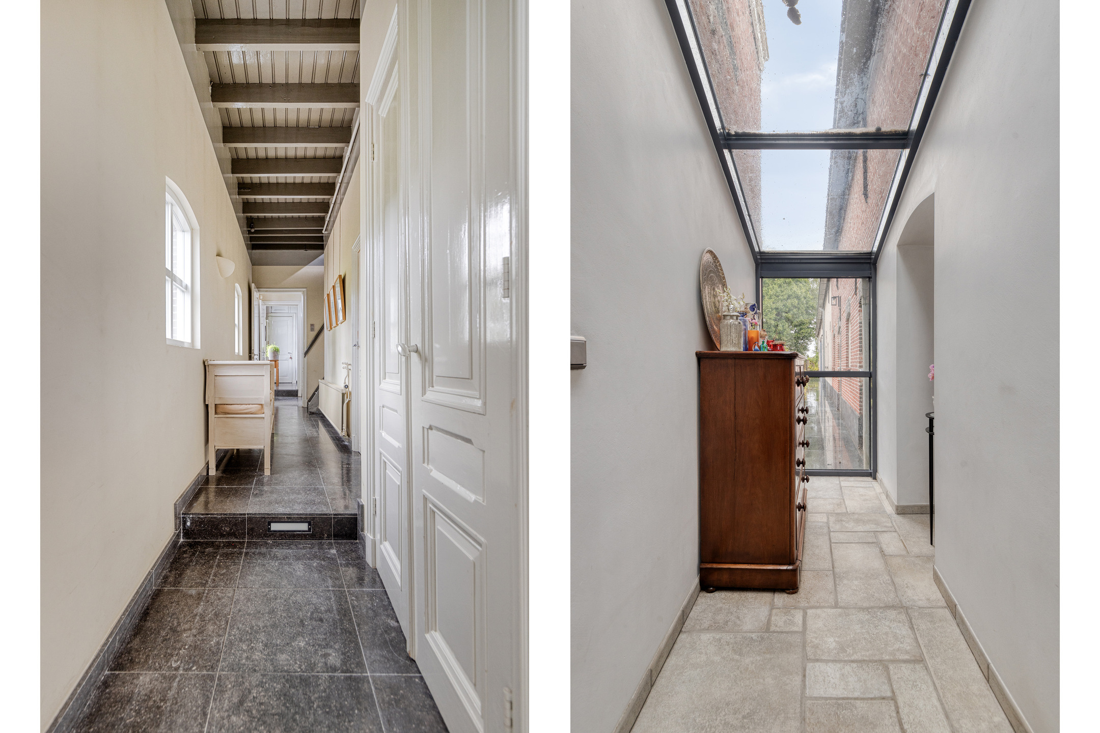 Overloop met een glazen dakopbouw;