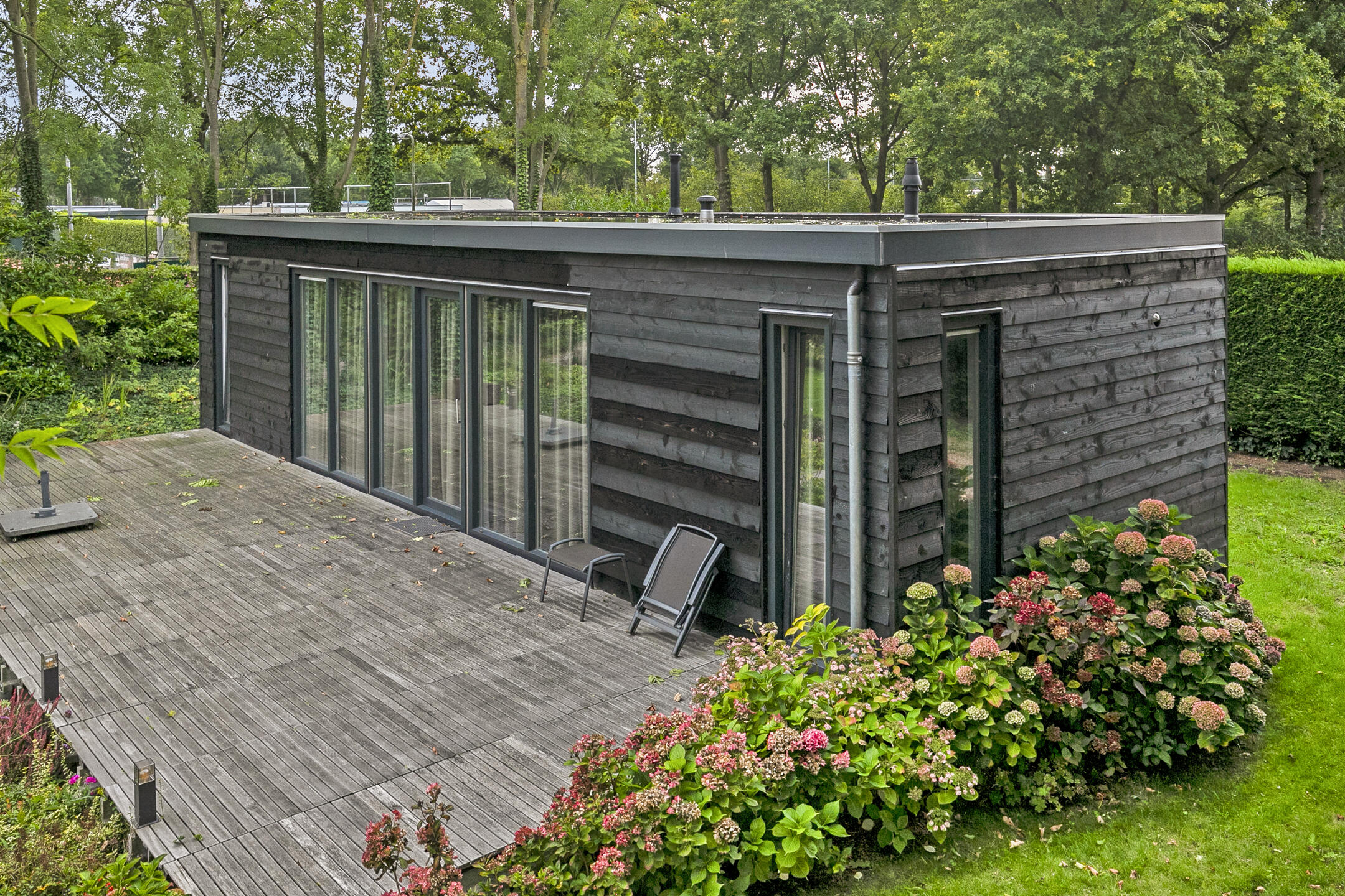 Optioneel vrijstaand gastenverblijf, zolang nog aanwezig (ter overname is bespreekbaar), vv. een 2-tal badkamers met toilet, een 2-tal slaapkamers en een keukeninrichting.