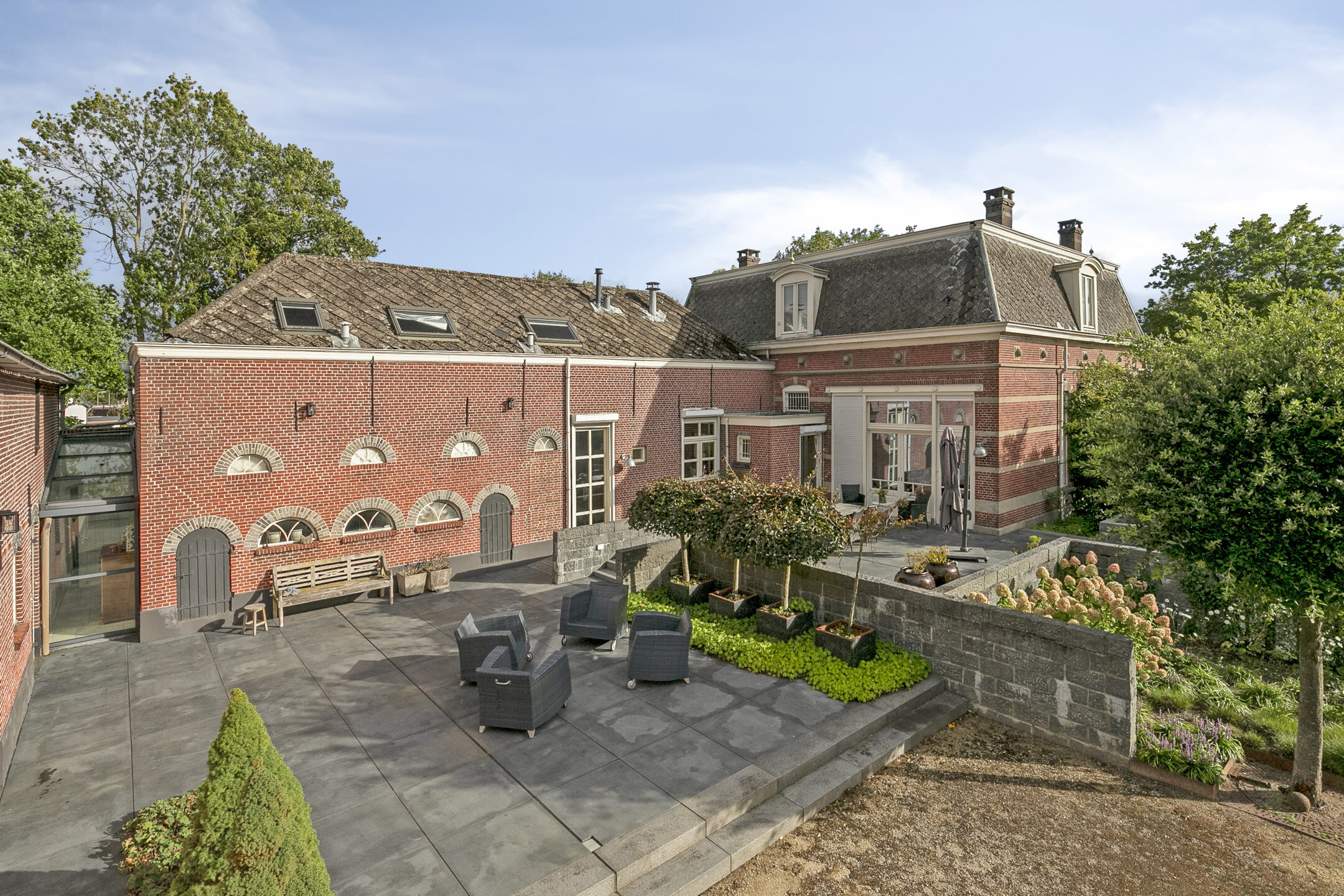 Het fraaie bijgebouw is voorzien van een ontspannings- en wellnessruimte met een bar, overdekt zwembad, sauna, was- en douchegelegenheid, fitness-ruimte, 3 royale garages en een berging.