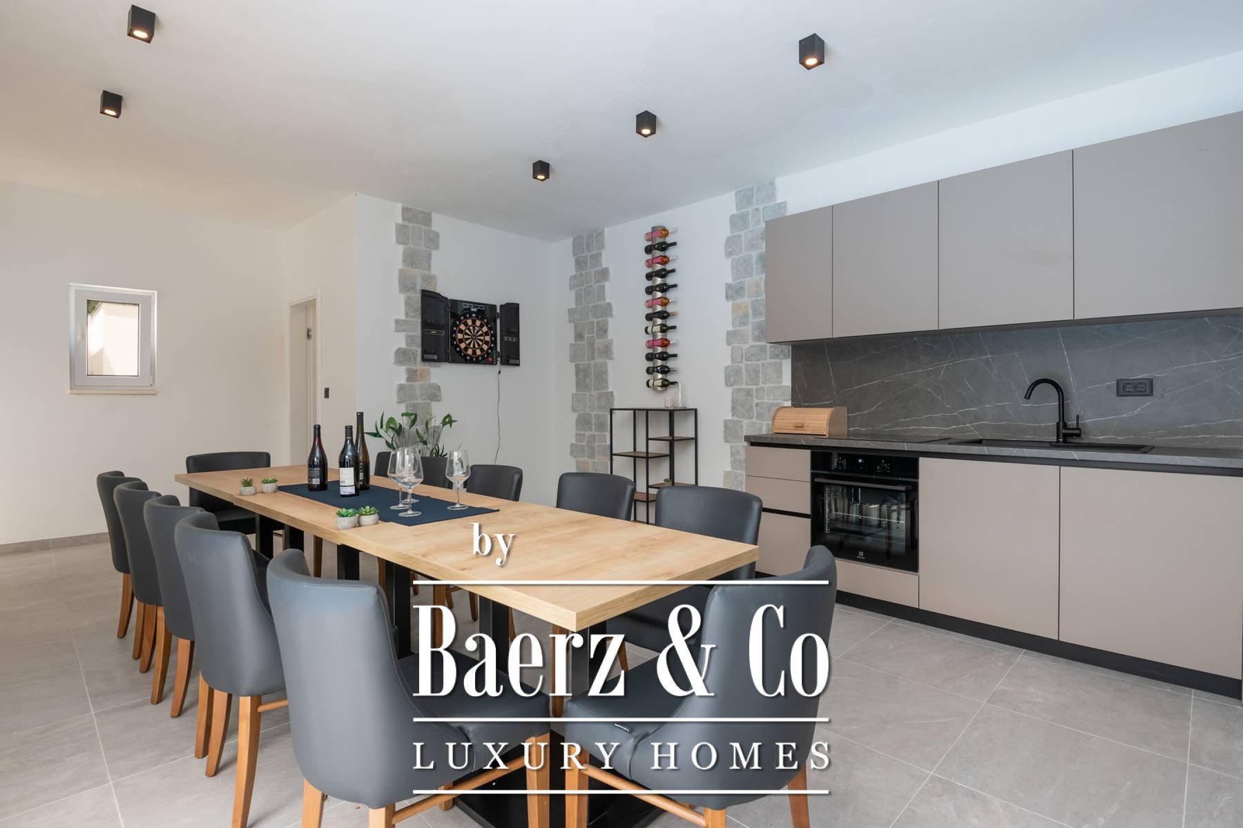 Het perceel van 701 m² biedt een basketbalveld en fraai aangelegde tuinen voor onopvallende ontspanning. Deze luxe villa te koop in Zagvozd is een doordacht toevluchtsoord dat natuur, privacy en hoogwaardige bouwstandaarden combineert op korte afstand van de Adriatische kust.