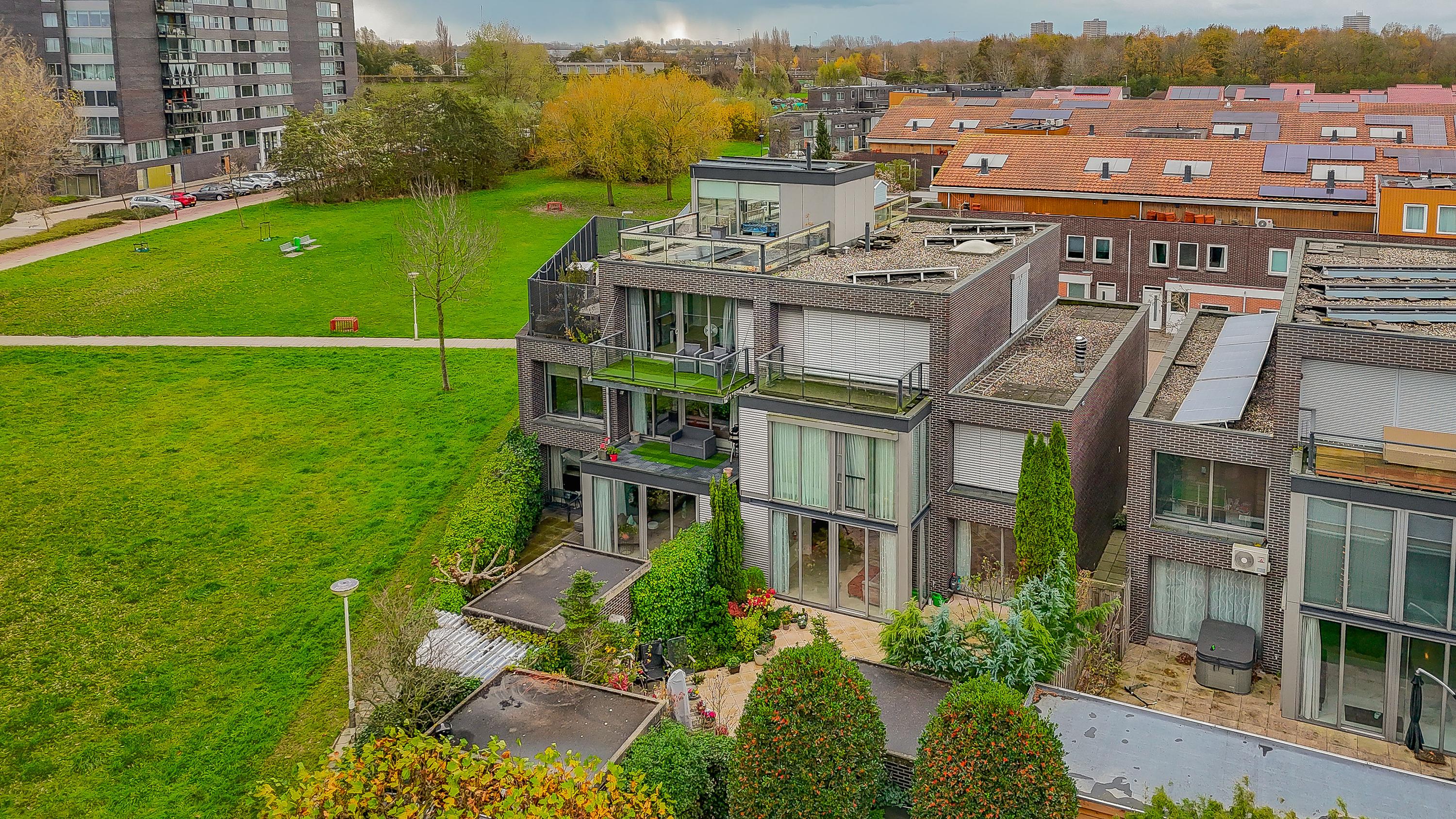 De woonruimtes zijn royaal opgezet en licht door de grote raampartijen. Elke woning heeft een eigen woonkamer met uitzicht op het groen rondom het huis. De keukens zijn praktisch ingericht en sluiten goed aan op de leefruimtes. In totaal zijn er drie moderne badkamers aanwezig, en door de verdeling over vier woonlagen is er altijd een rustige plek te vinden. De slaapkamers zijn verdeeld over alle verdiepingen, met ruimte voor grote bedden, bureaus en kasten. De huidige bewoners hebben de woning keurig onderhouden; de afwerking is strak en eigentijds. Dankzij HR++ beglazing, aluminium kozijnen, dak-, muur- en vloerisolatie, en 12 zonnepanelen is dit huis ook nog eens energiezuinig (energielabel A).